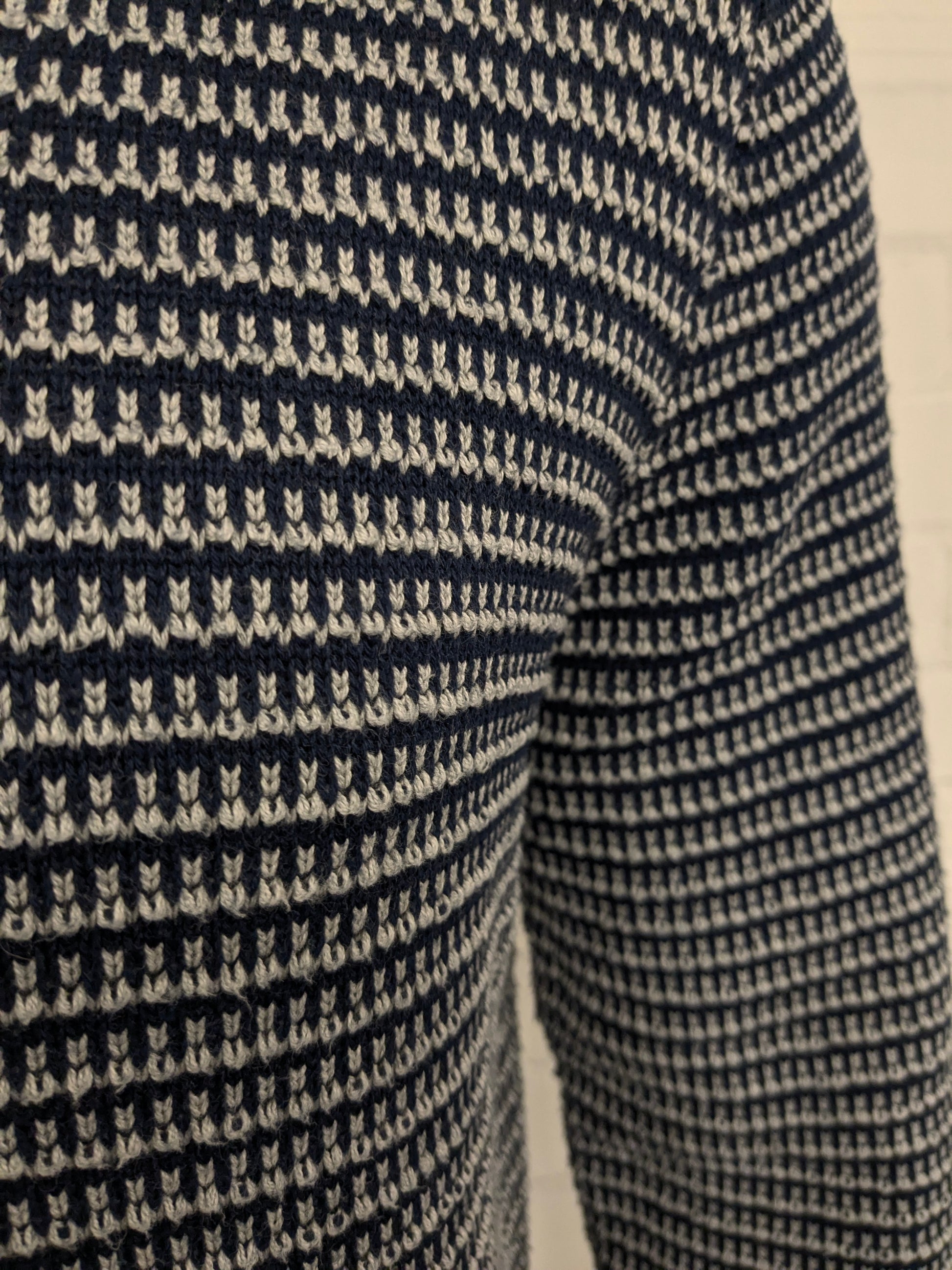 Blue Harbor -Pullover mit Reißverschluss. Blaues graues Motiv. Größe L.