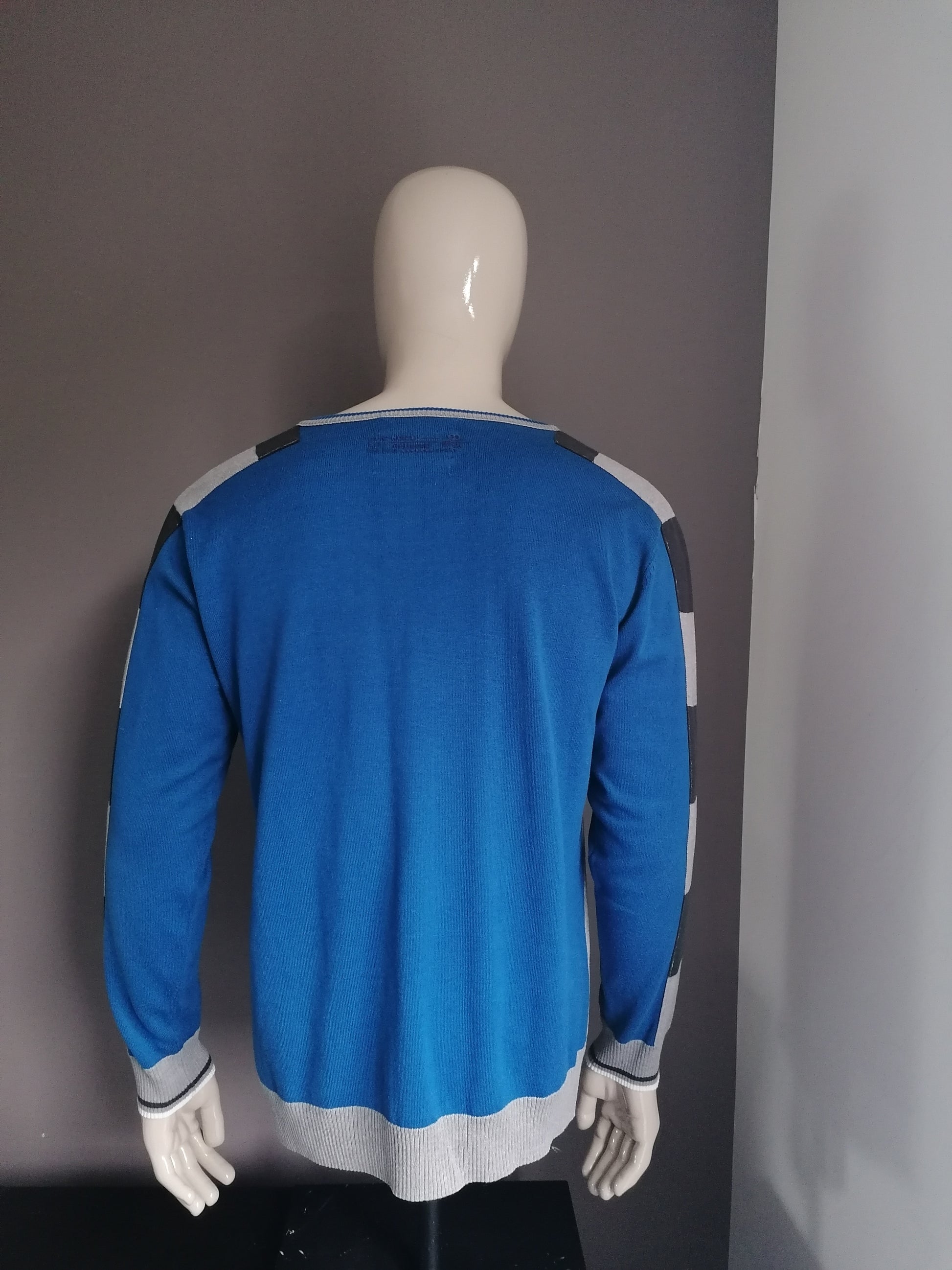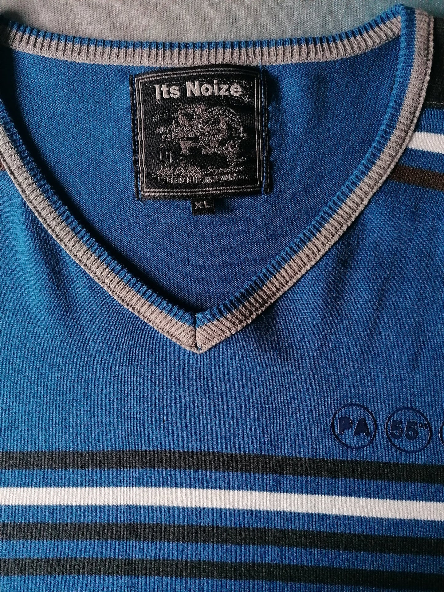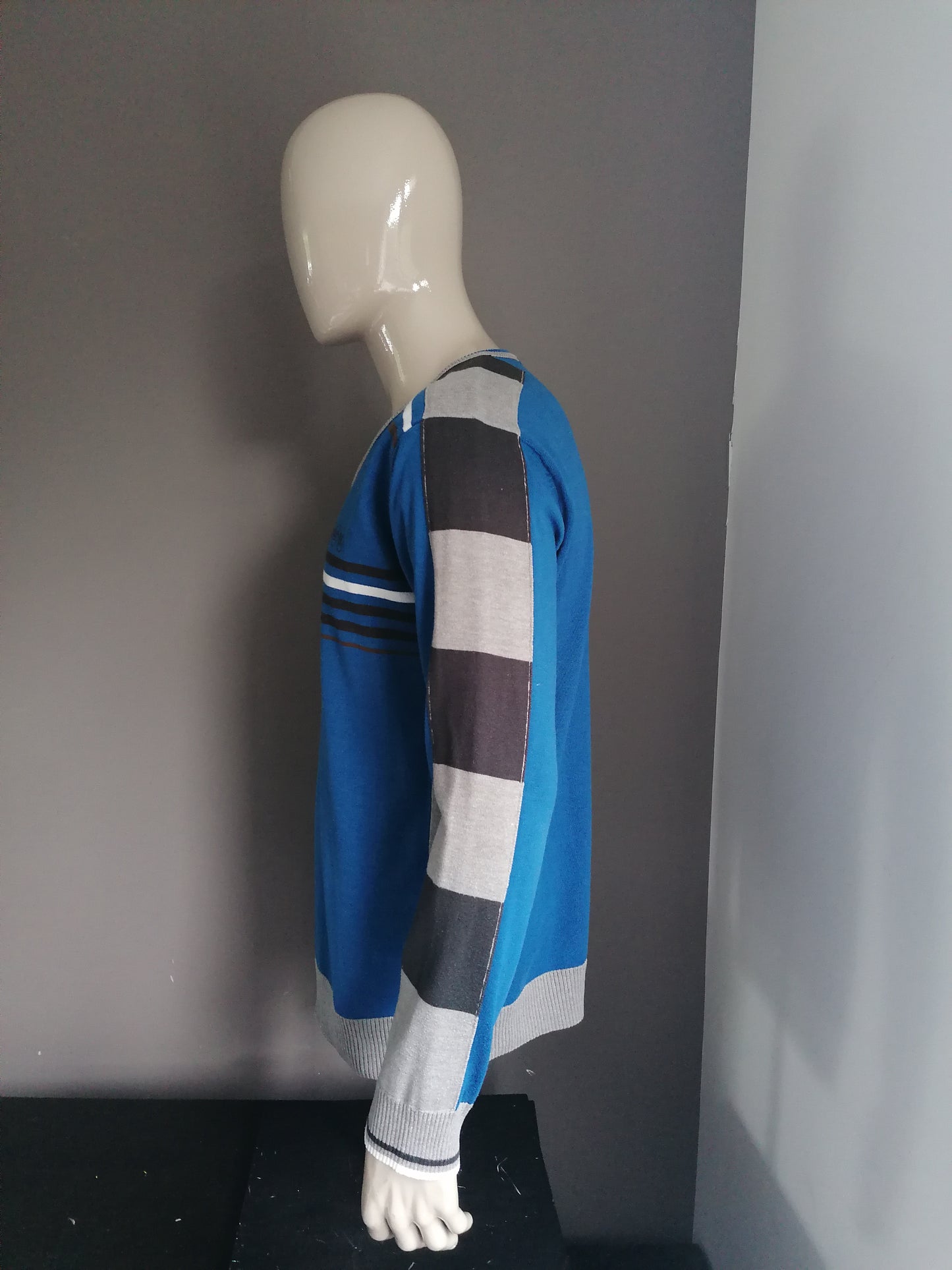 Es ist Noise-Pullover. Blaugrau farbig. Größe XL.