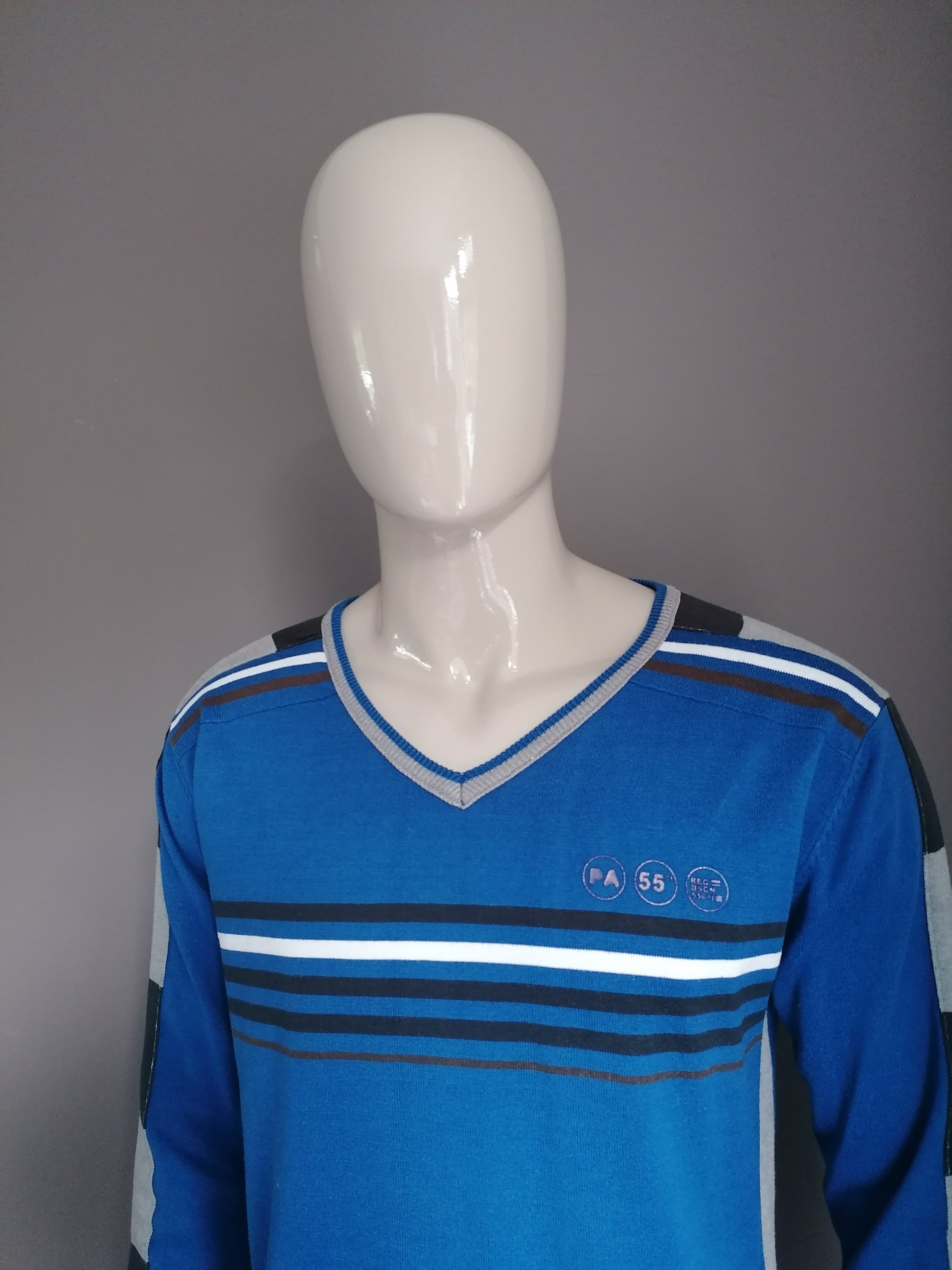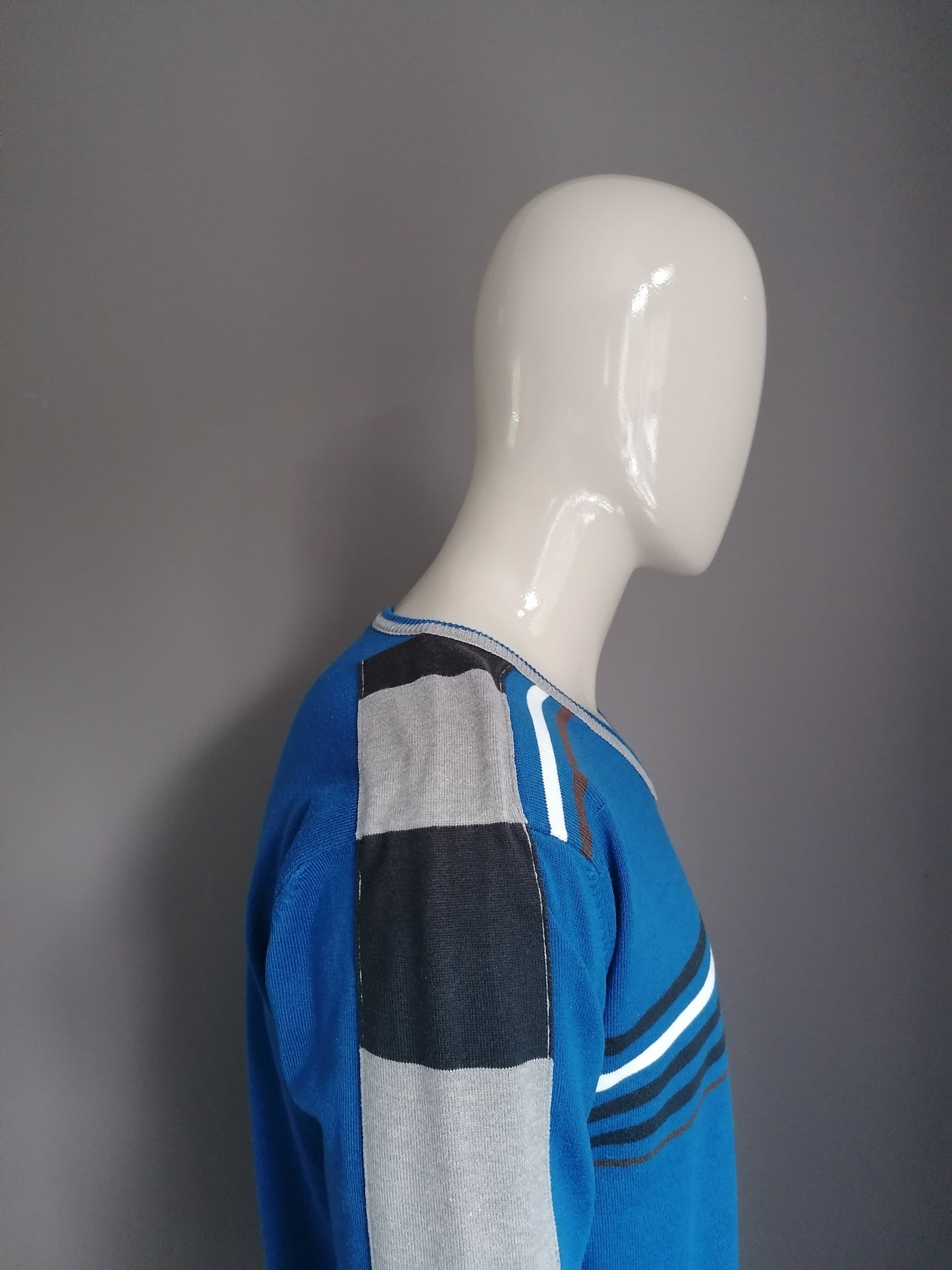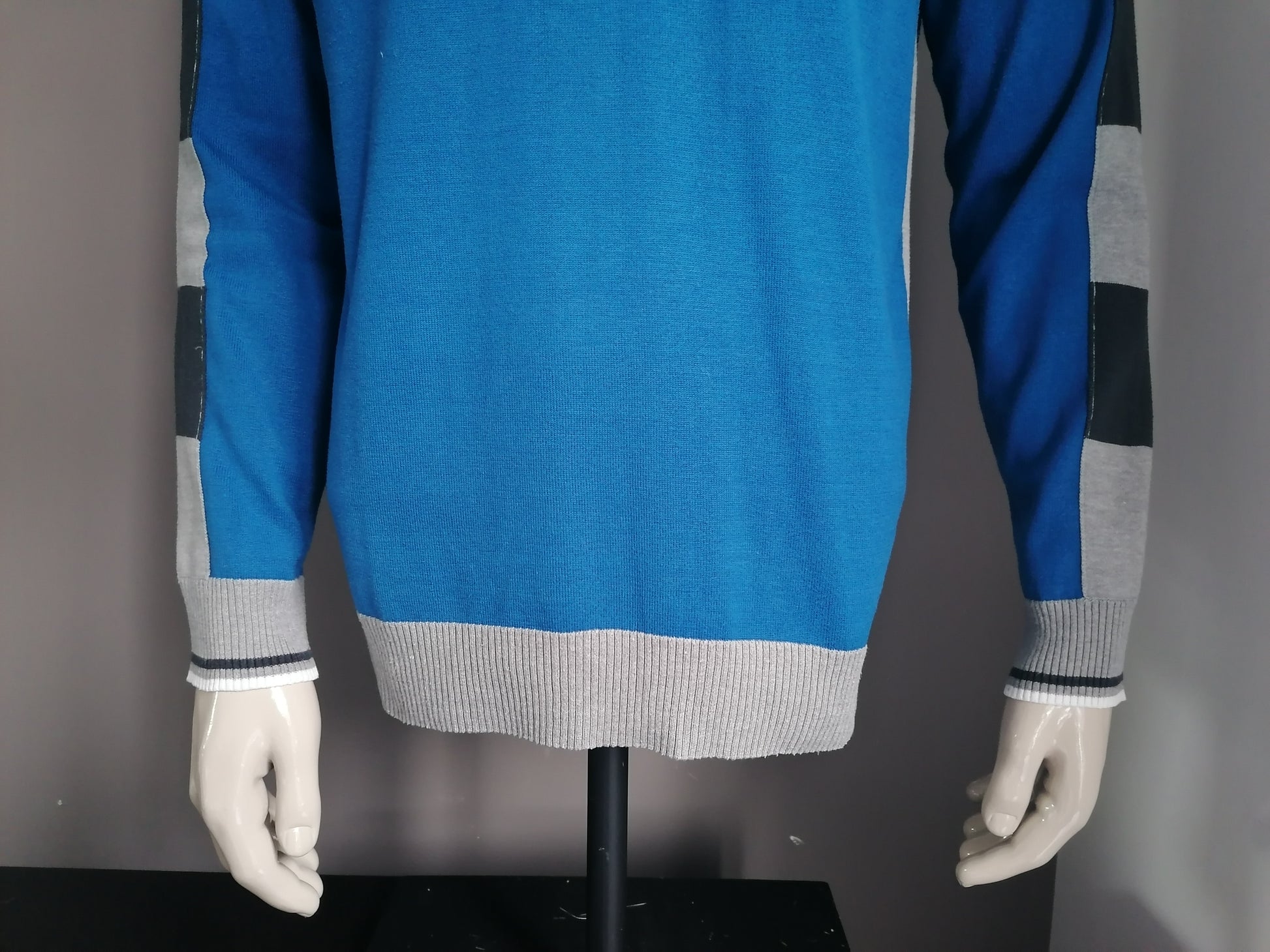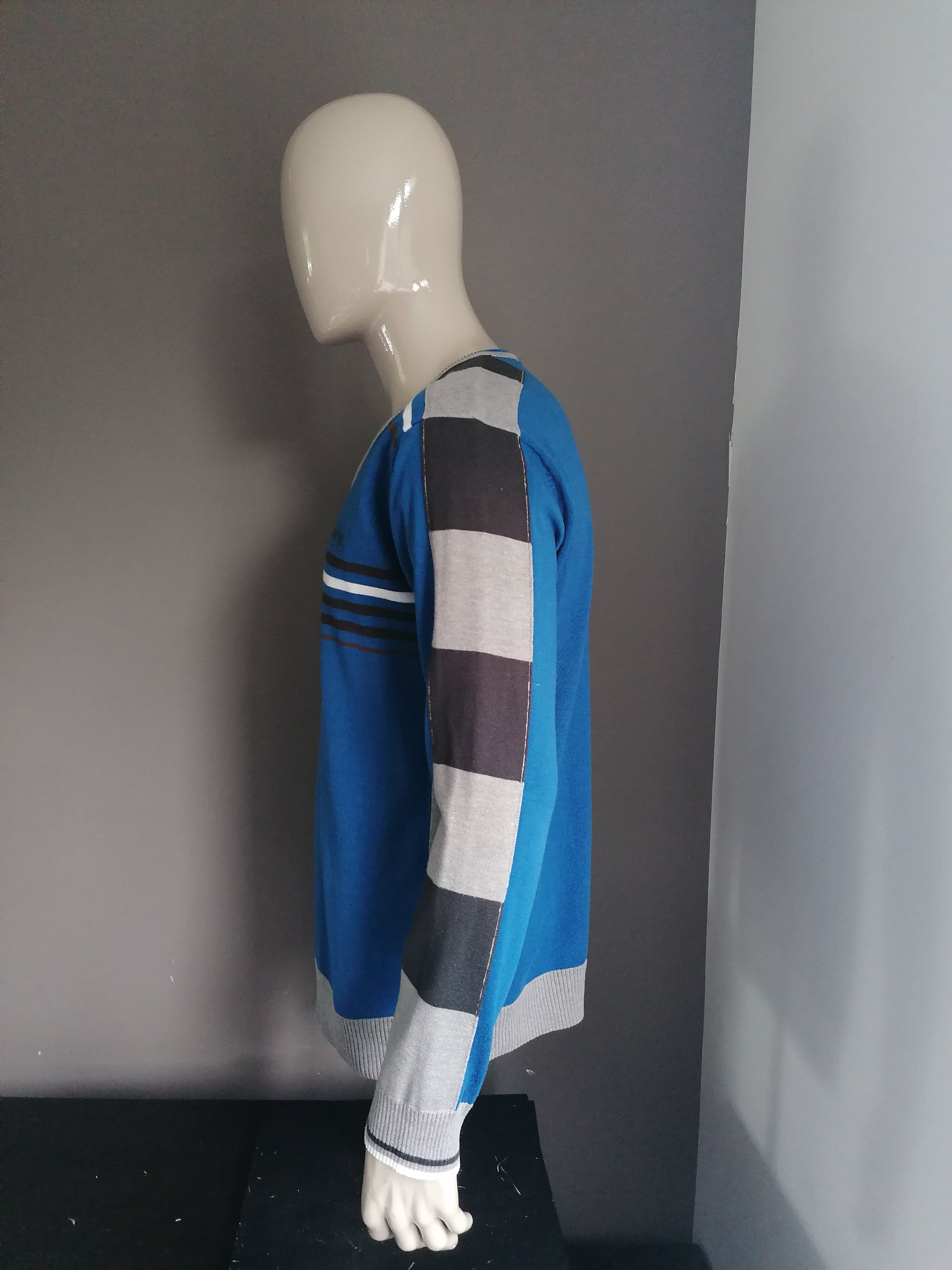 Es ist Noise-Pullover. Blaugrau farbig. Größe XL.