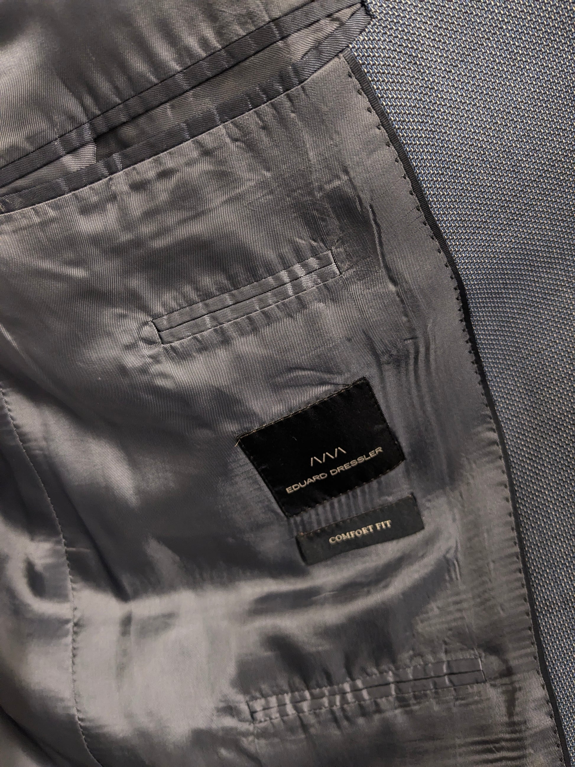 Eduard Dressler Wolljacke. Super 100. Blaugrau gemischt. Größe 26 (52 / l).