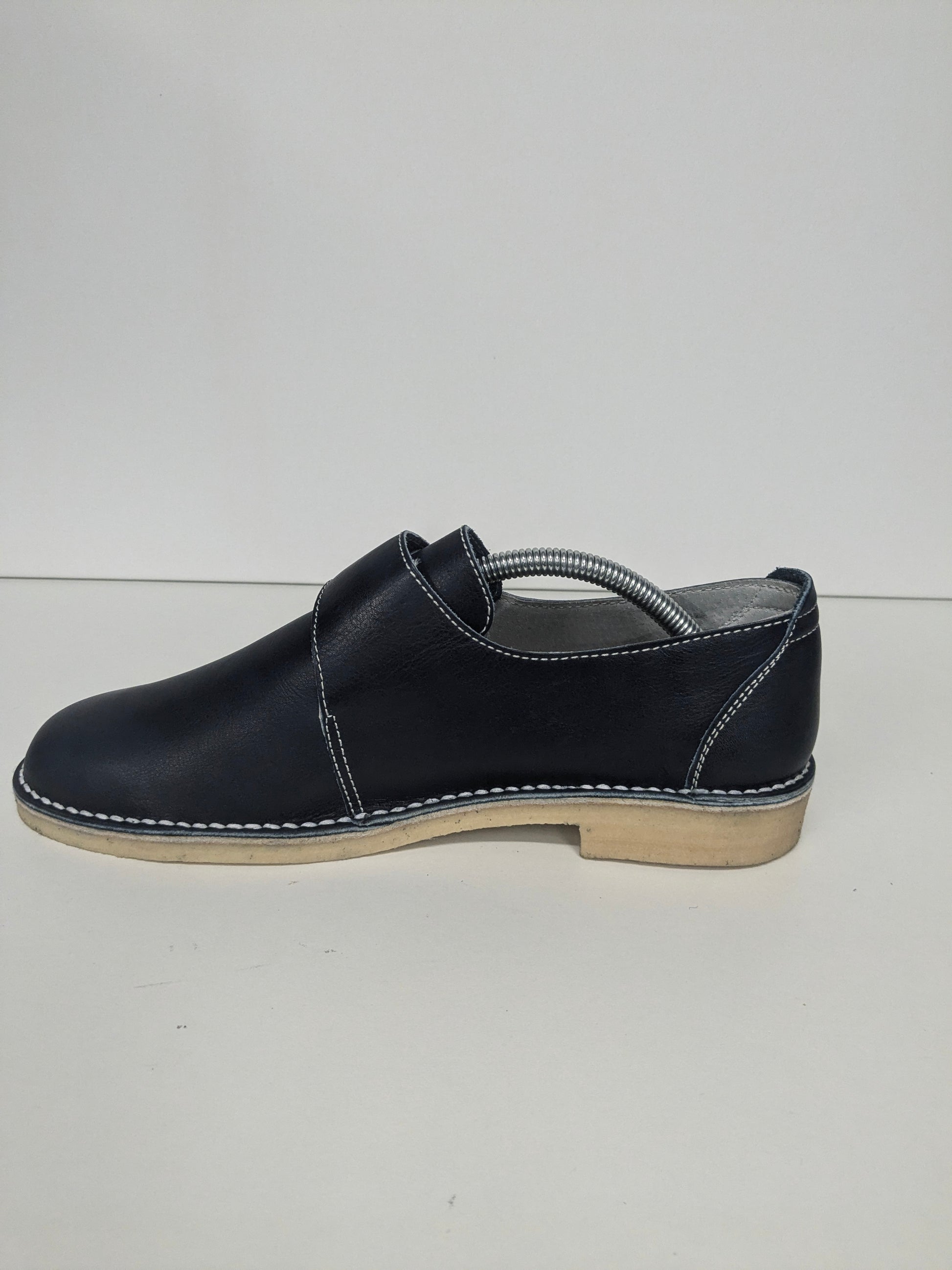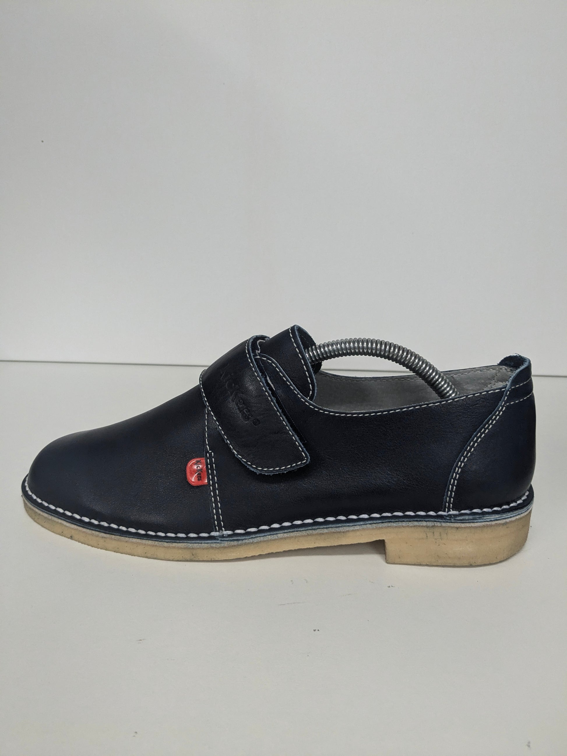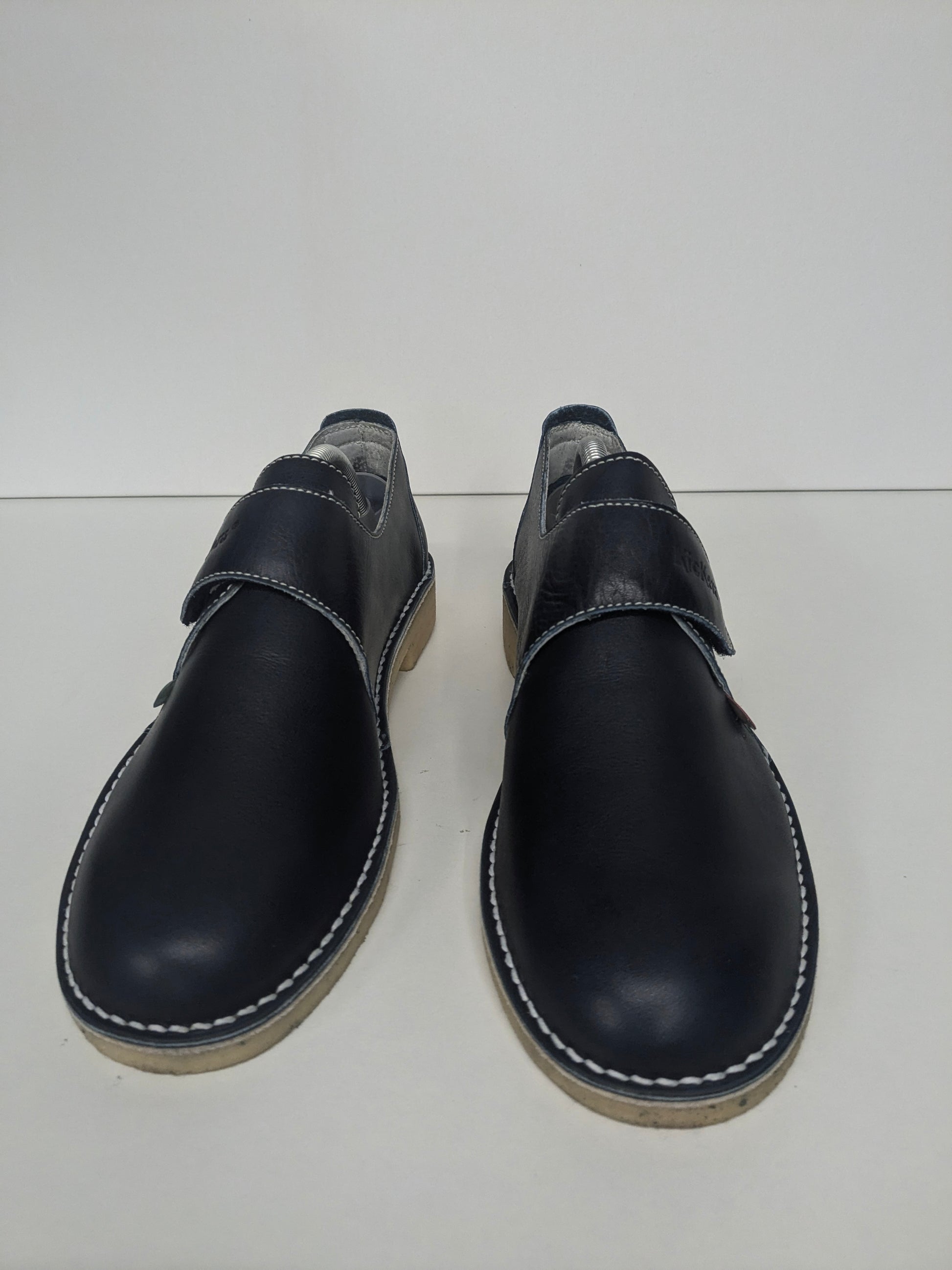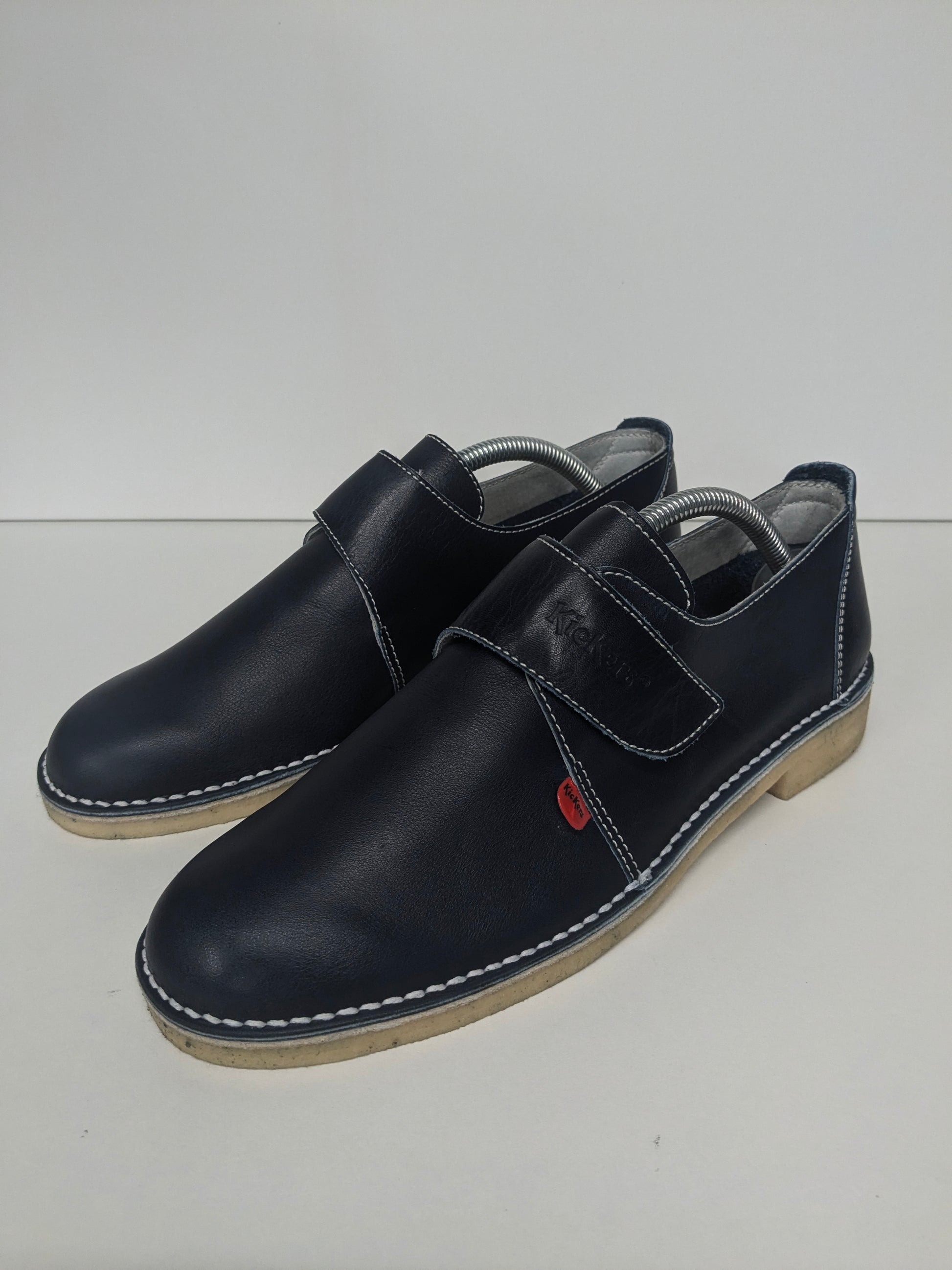 Kickerschuhe mit Klettverschluss. Dunkelblau gefärbt. Größe 43.