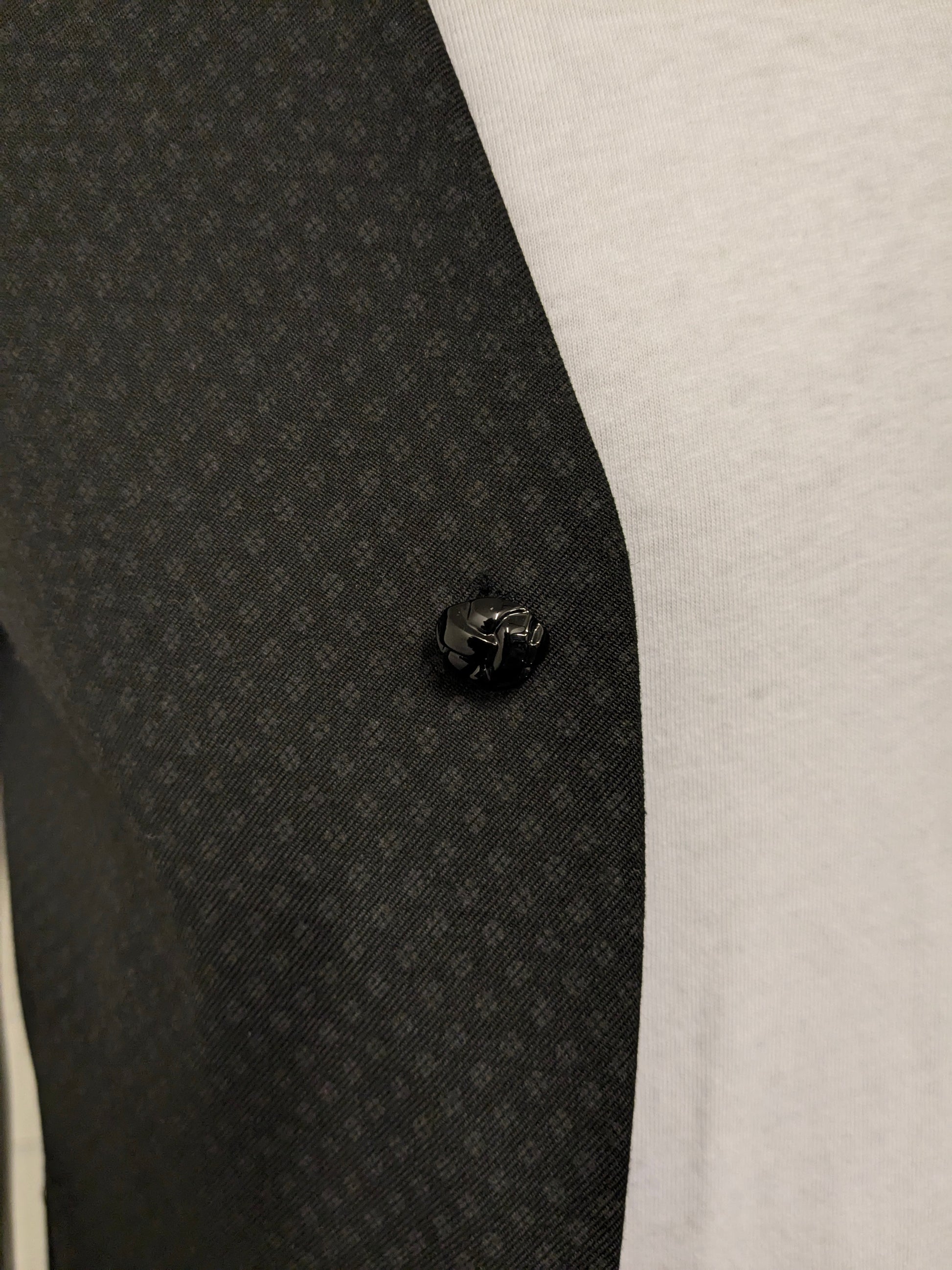 Neill Katter Weste. Schwarzes glänzendes Motiv. Größe S.