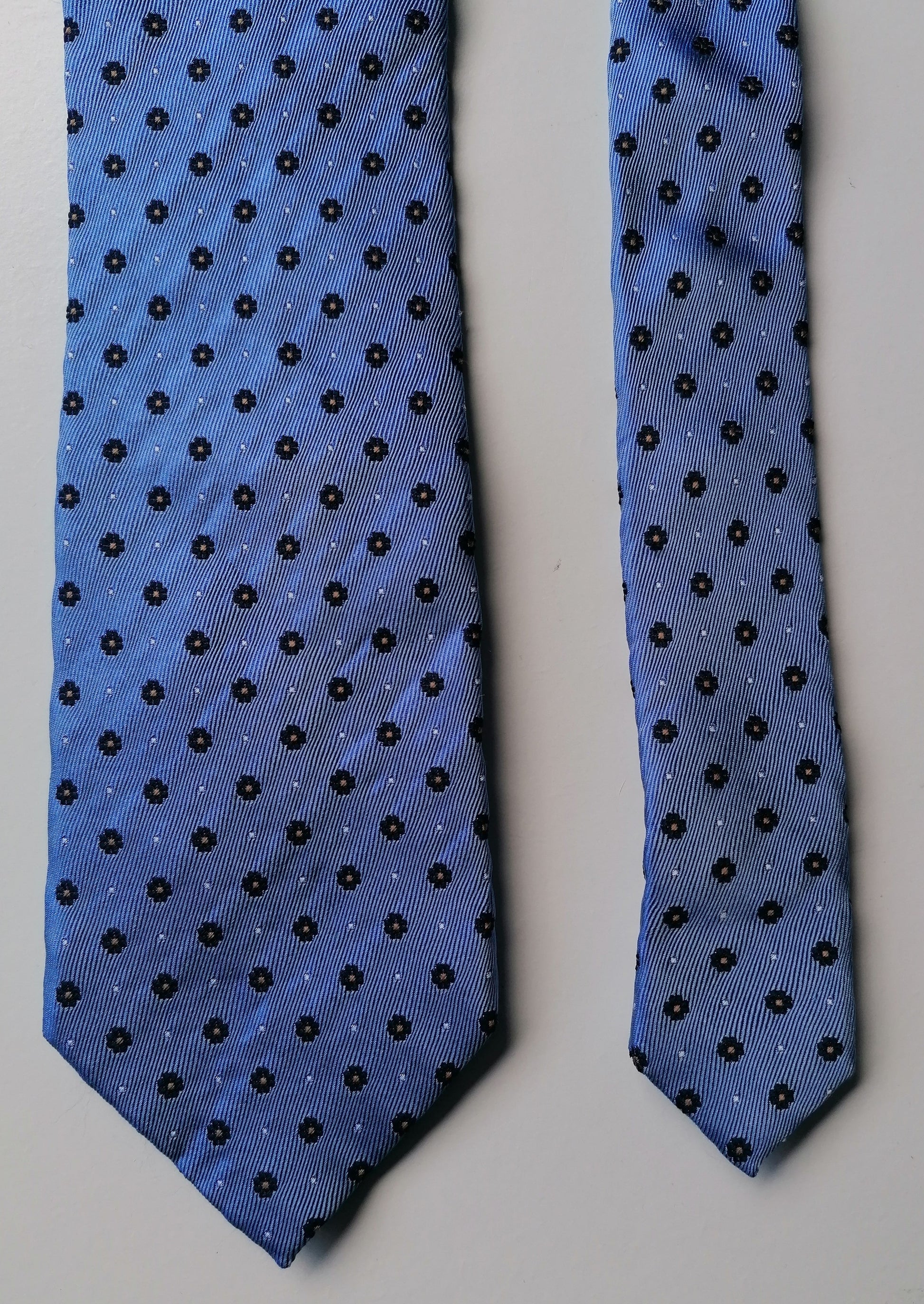 Seidenkrawatte ausschreiten. Blaues Blütenmotiv.