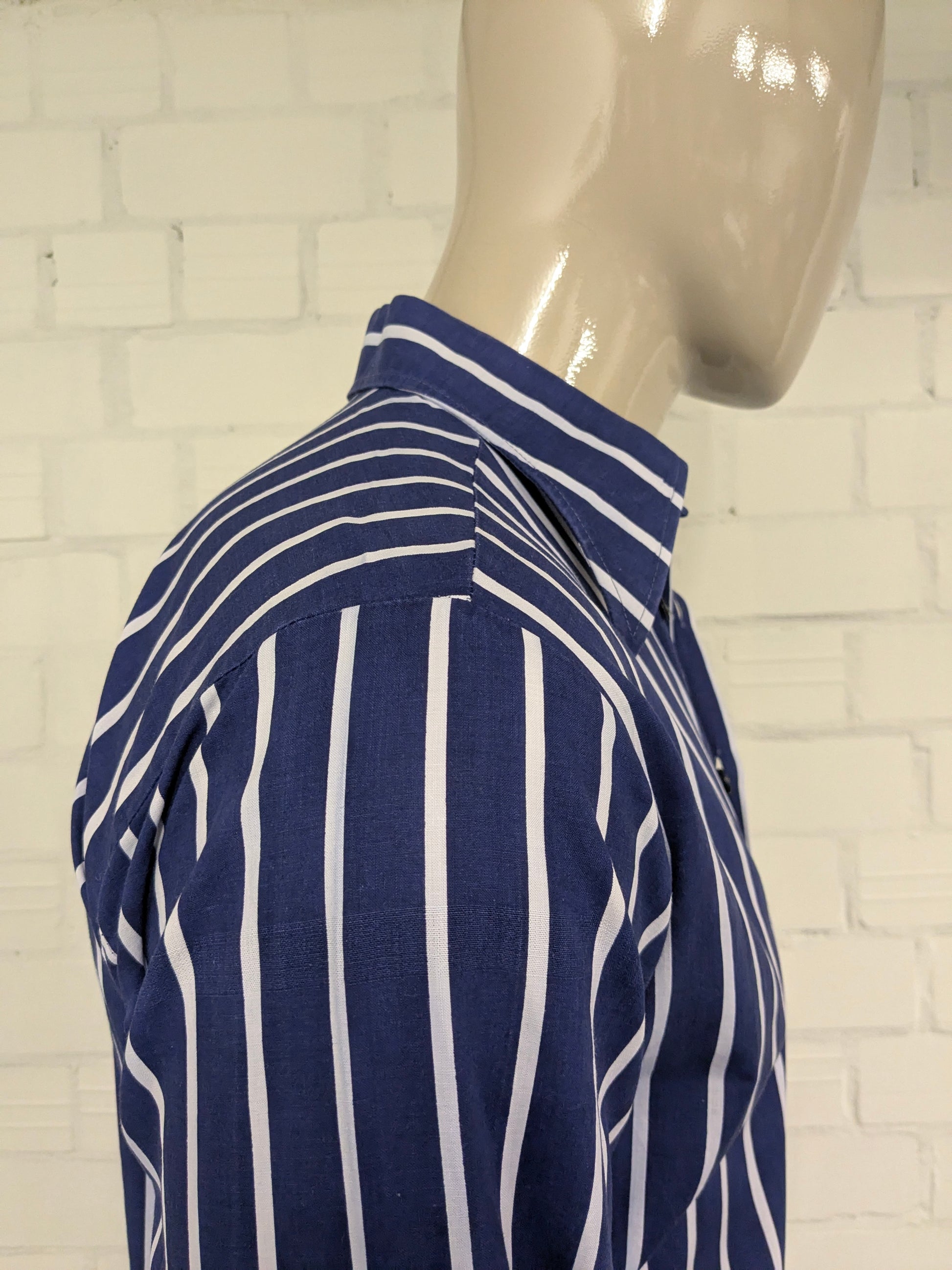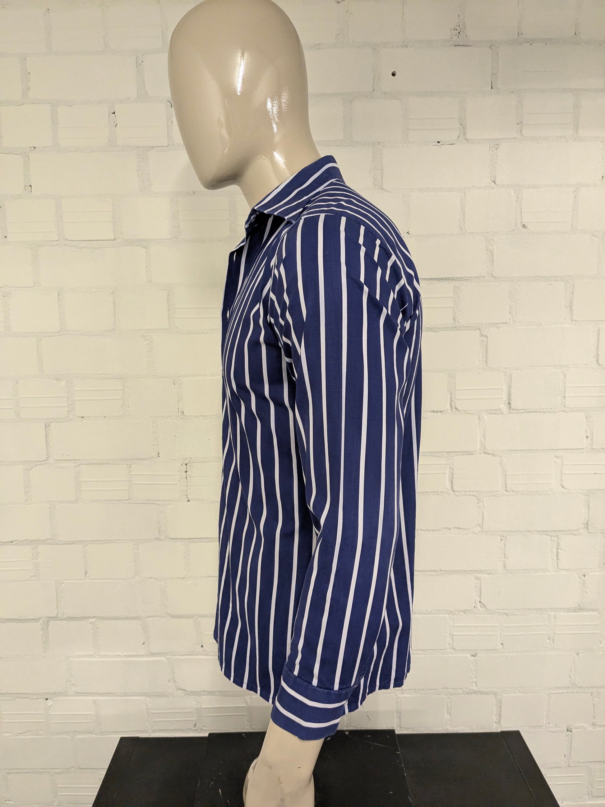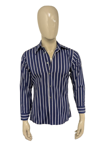 Vintage 70er Jahre mit Punktkragen. Blau weiß gestreift. Größe M.