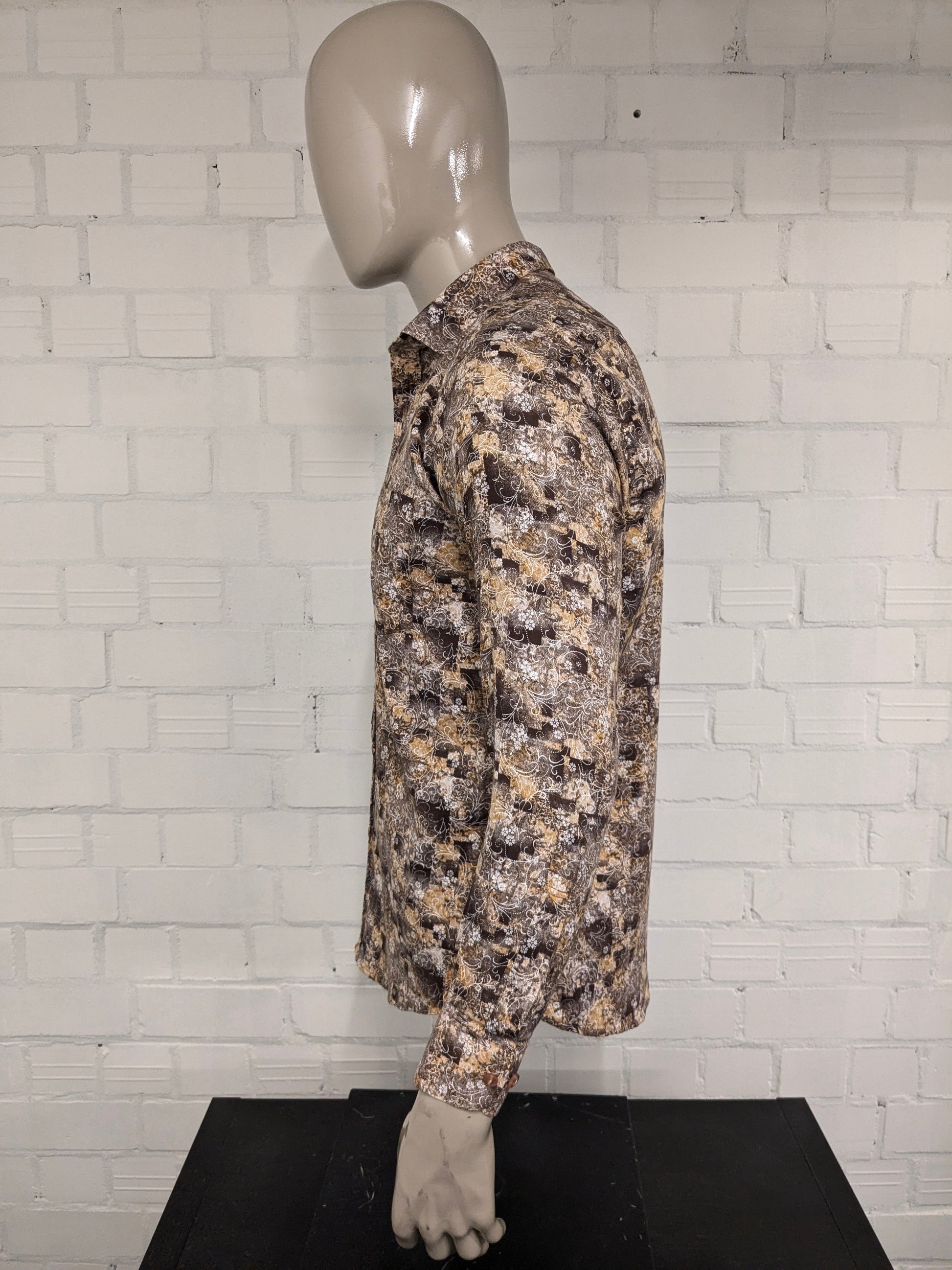 Vintage Diamond Touch -Shirt. Braune weiße Blumen drucken. Größe M.