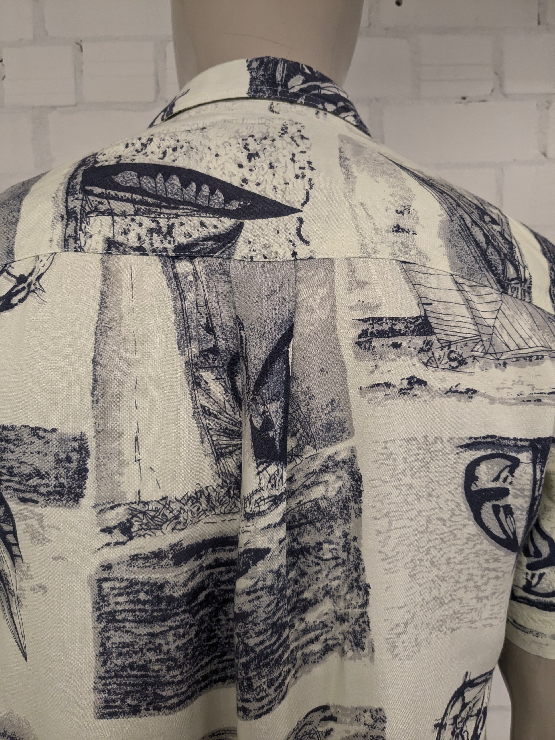 Vintage Pacific Ocean Shirt Kurzarm. Gelbblaudruck. Größe L.