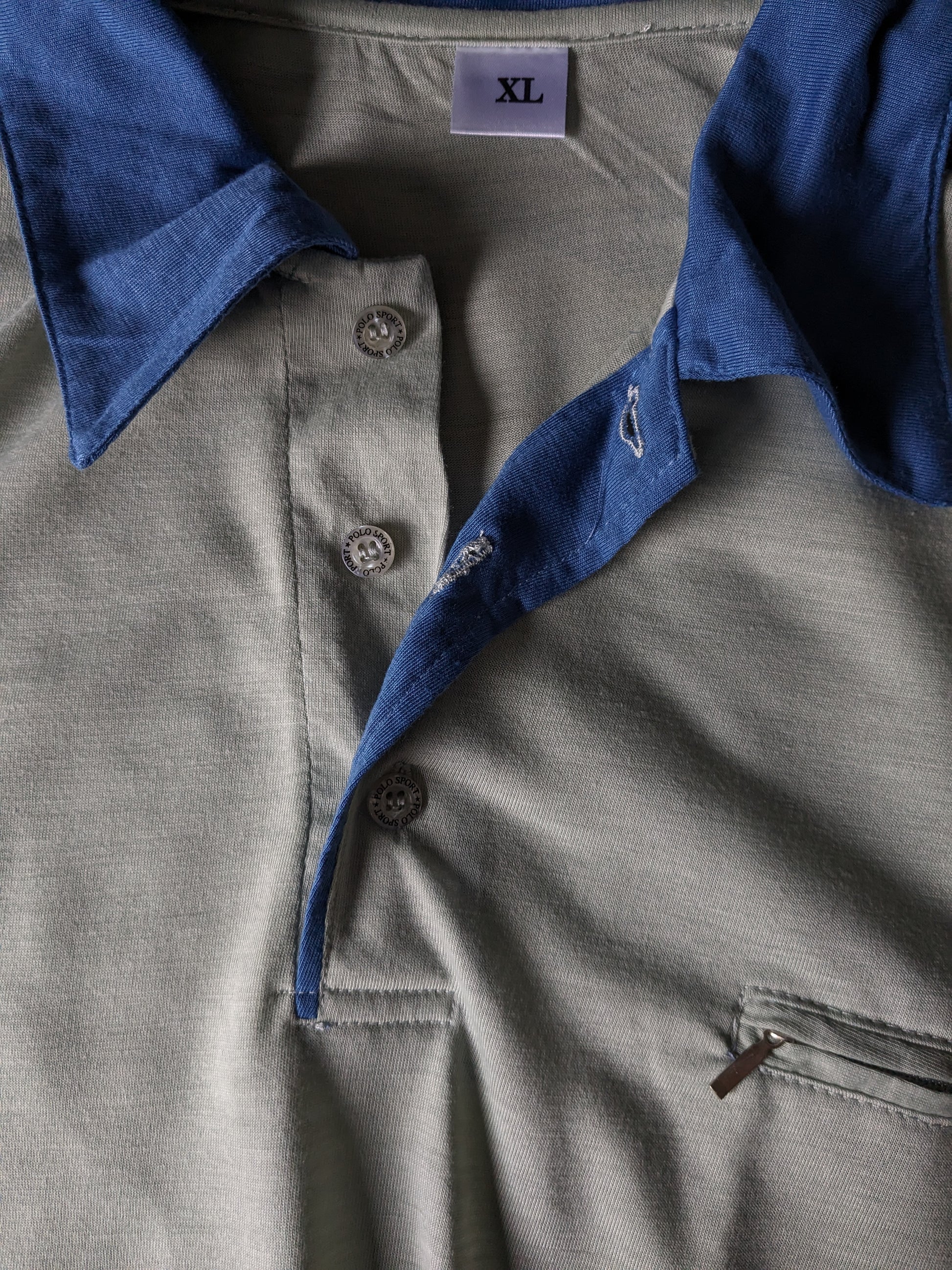 Vintage Polo mit Gummiband. Grün blau. Größe L / XL.