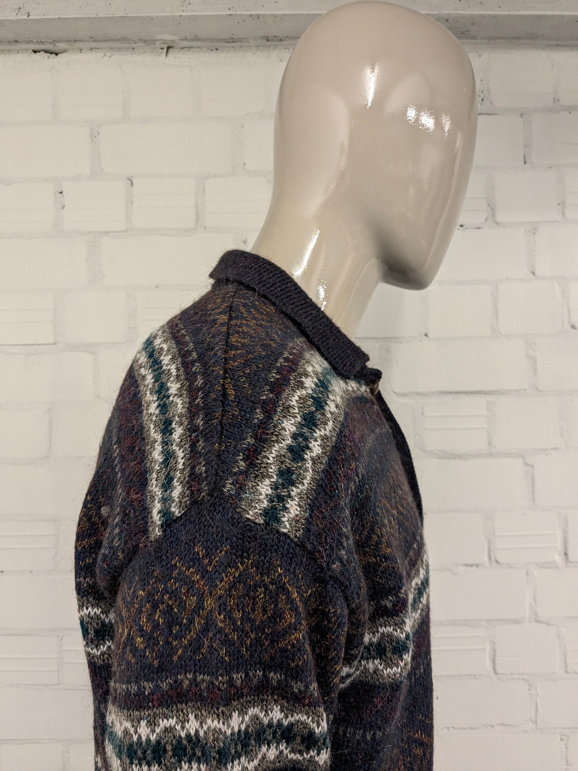 Vintage St. Michael Alpaca Wolle Polo -Pullover. Lila rotgrün braun gefärbt. Größe xl.