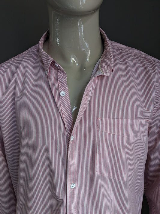 Selected homme shirt short sleeve. Red beige striped. Size L. Regular Fit.