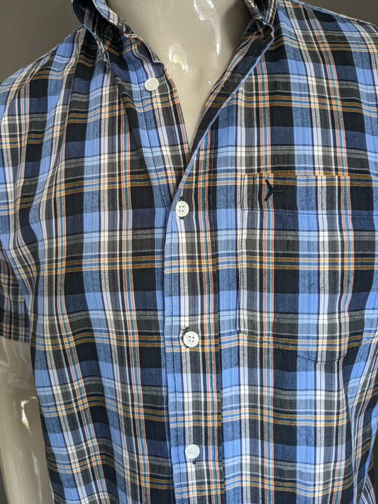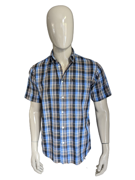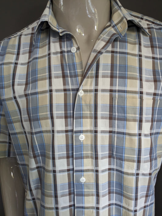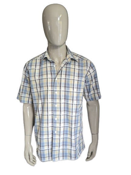 Vintage 70's shirt with point collar. Yellow blue white checkered. Size L.