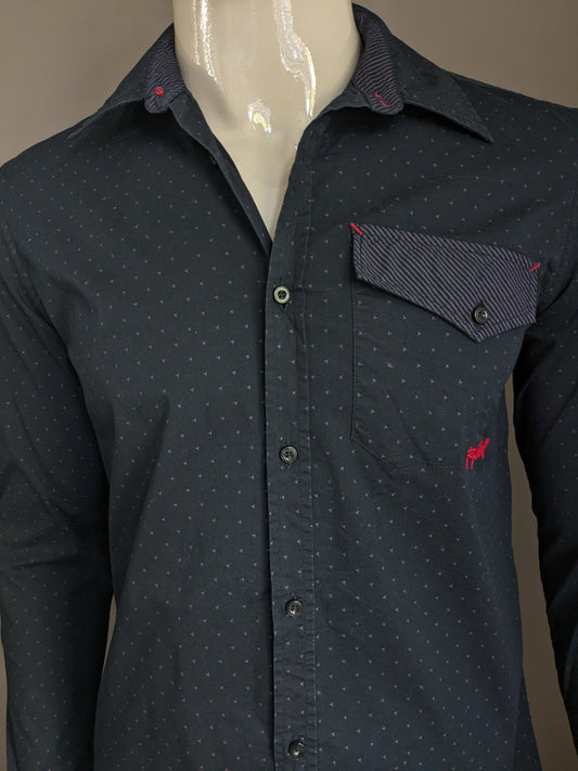 s.Oliver shirt with press studs. Blue gray print. Size M. Slim