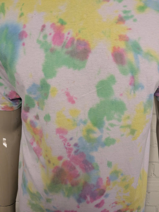Fruit of the loom tie dye shirt. Yellow pink blue green colored. Size L.