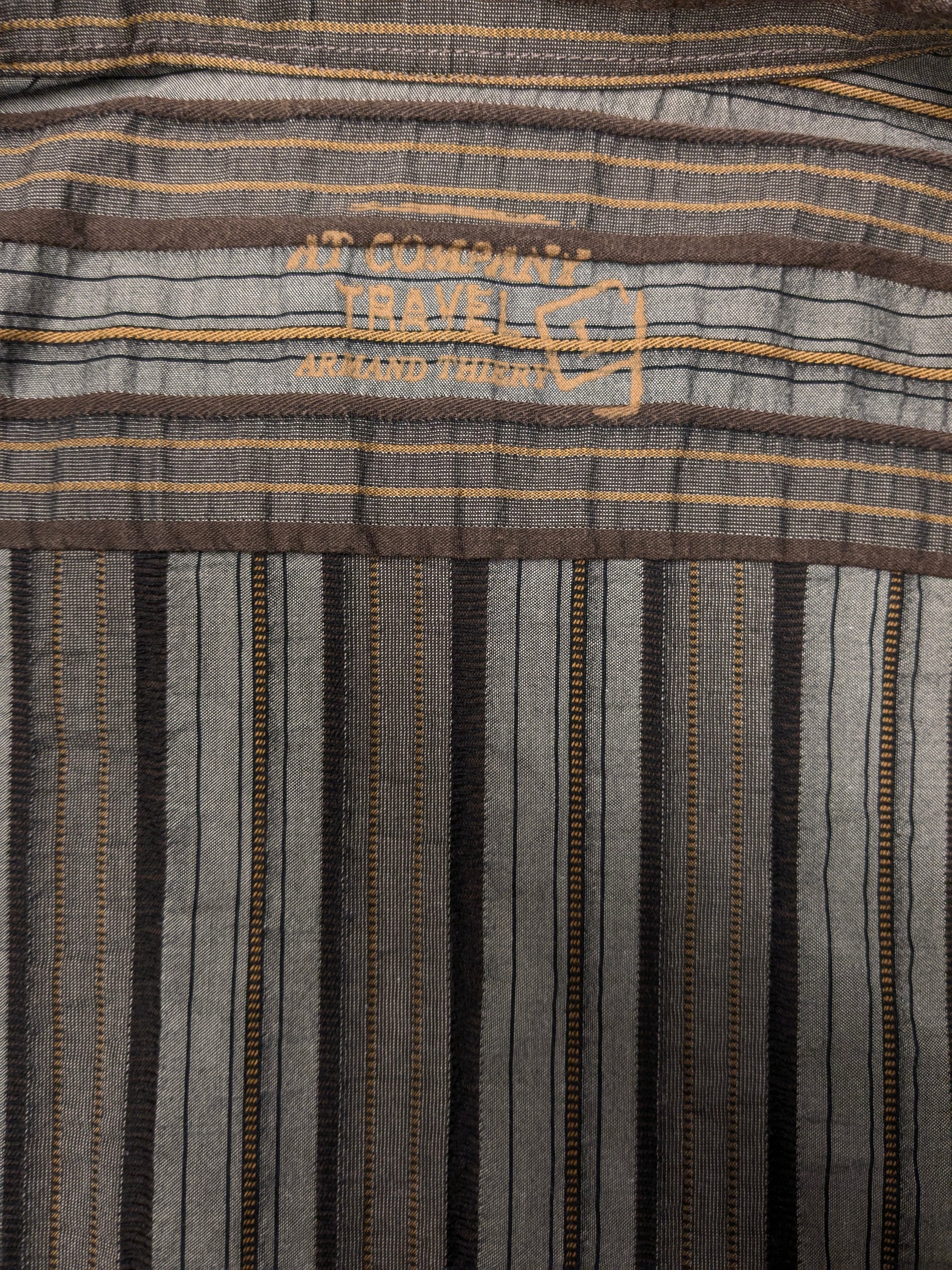 At company shirt. Gray brown black tangible striped motif. Size L.