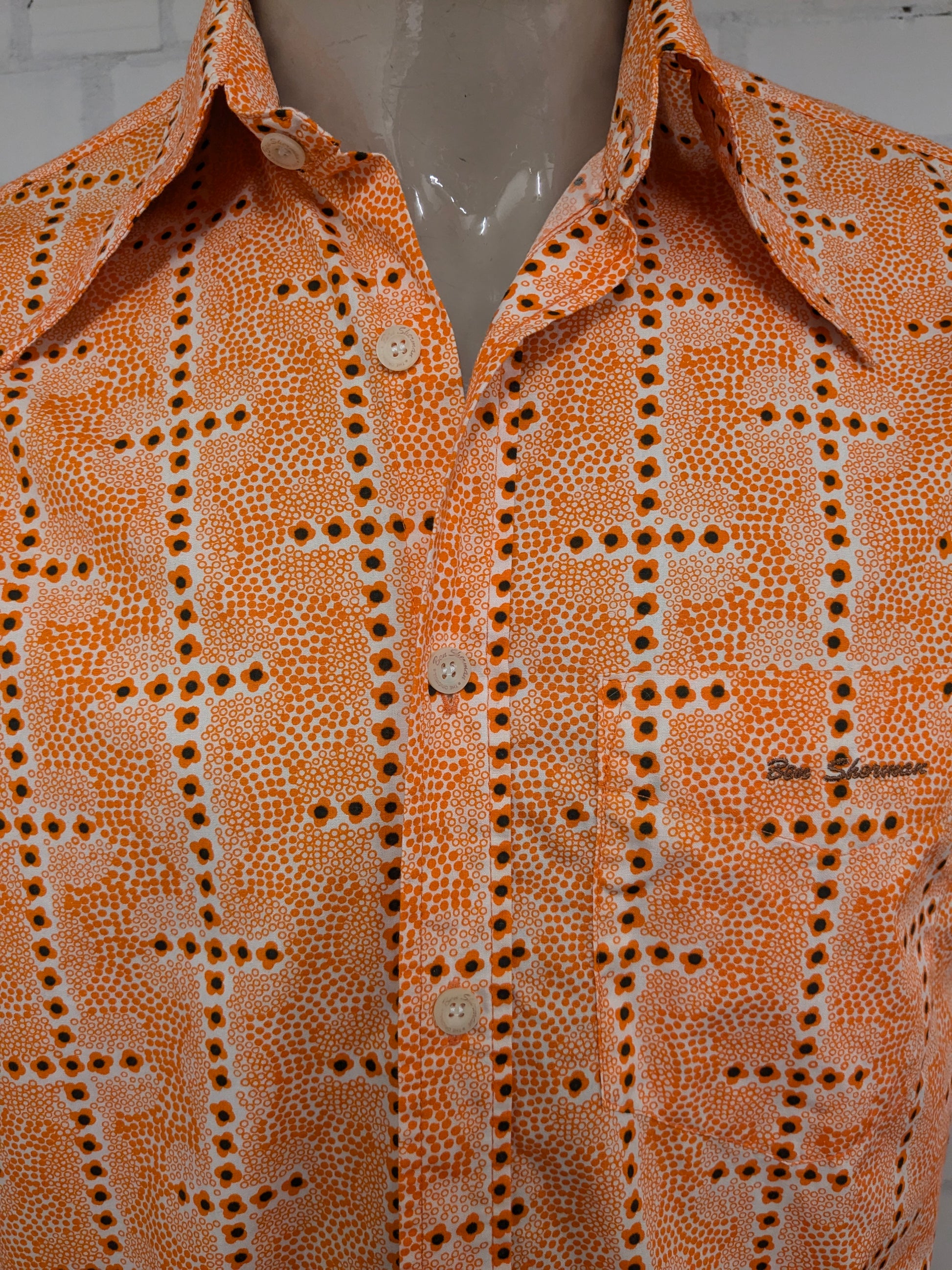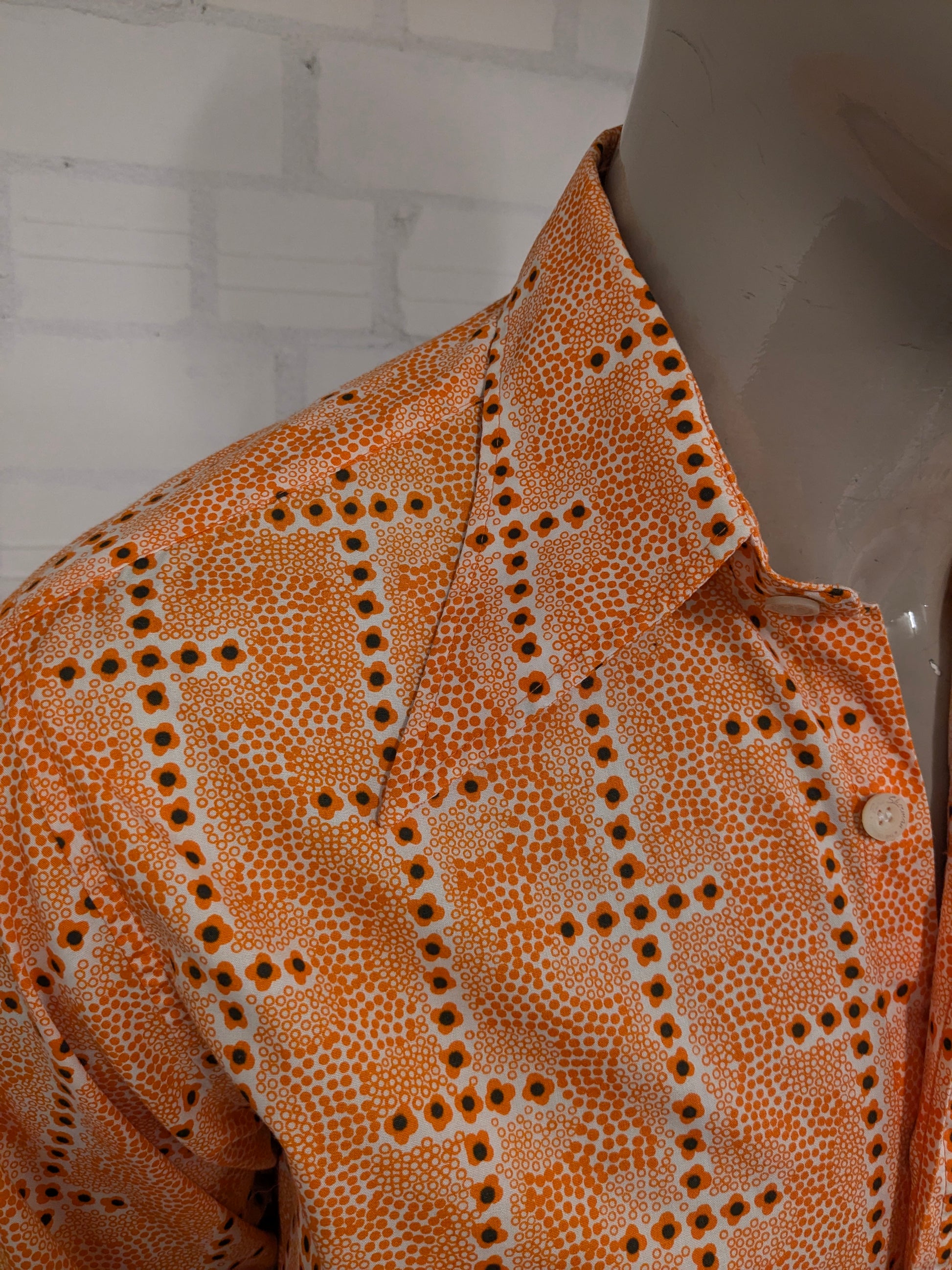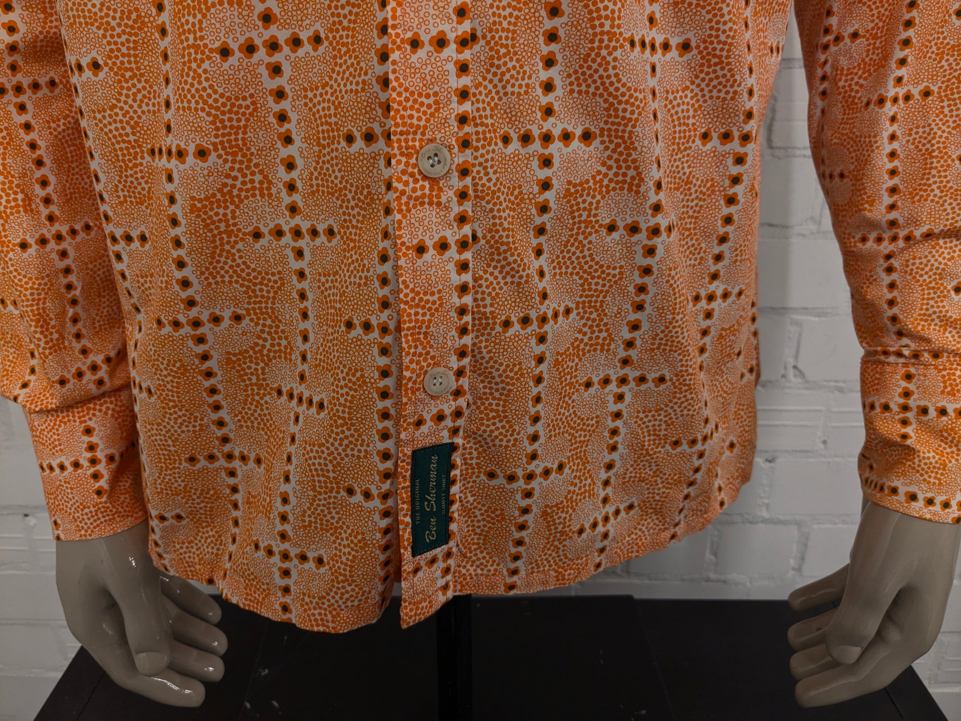 Ben Sherman 70's shirt with point collar. Orange beige black print. Size L. Slim Fit.