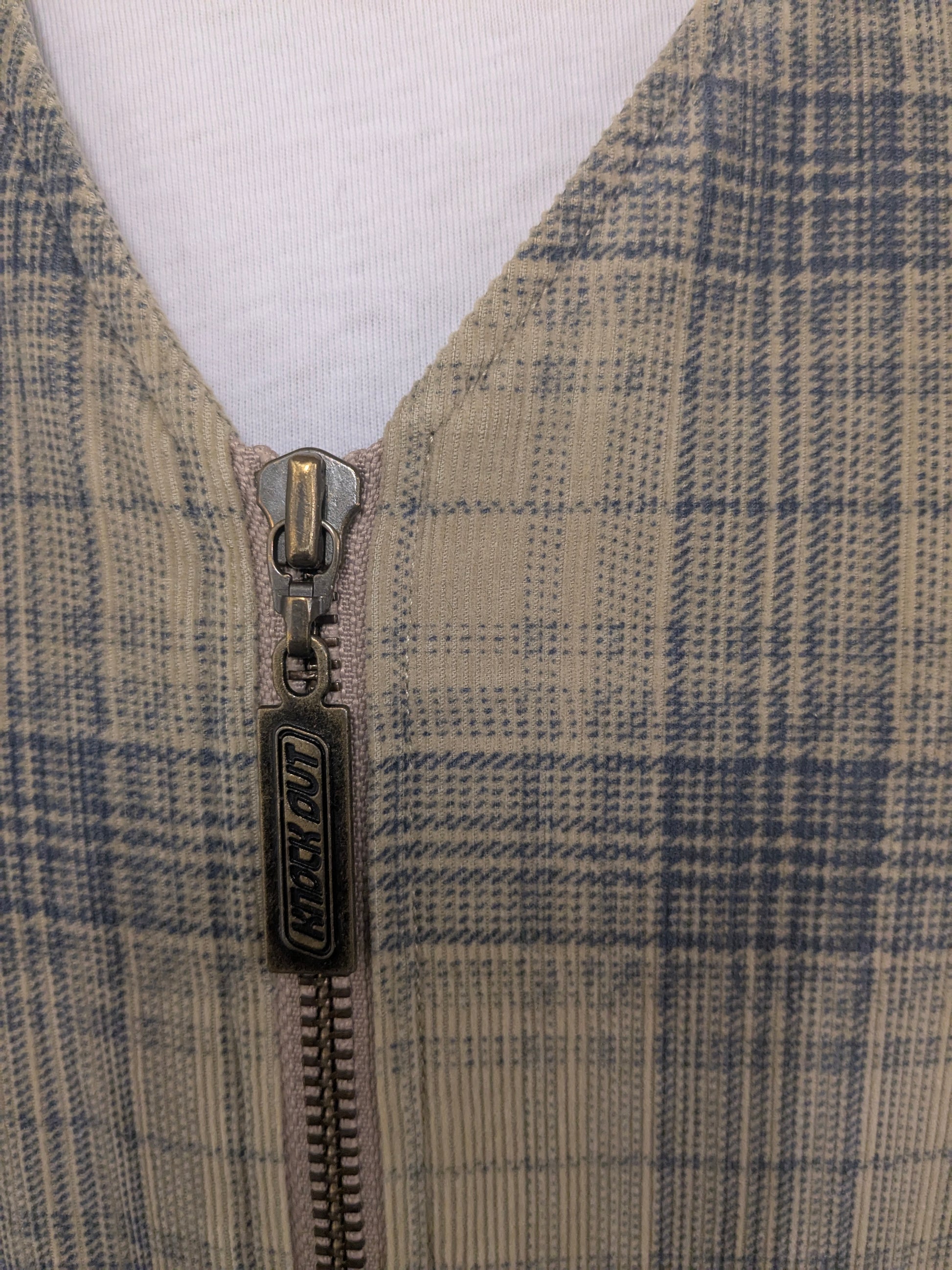 Knock out Bodywarmer. Beige Blue checked. Size XL.