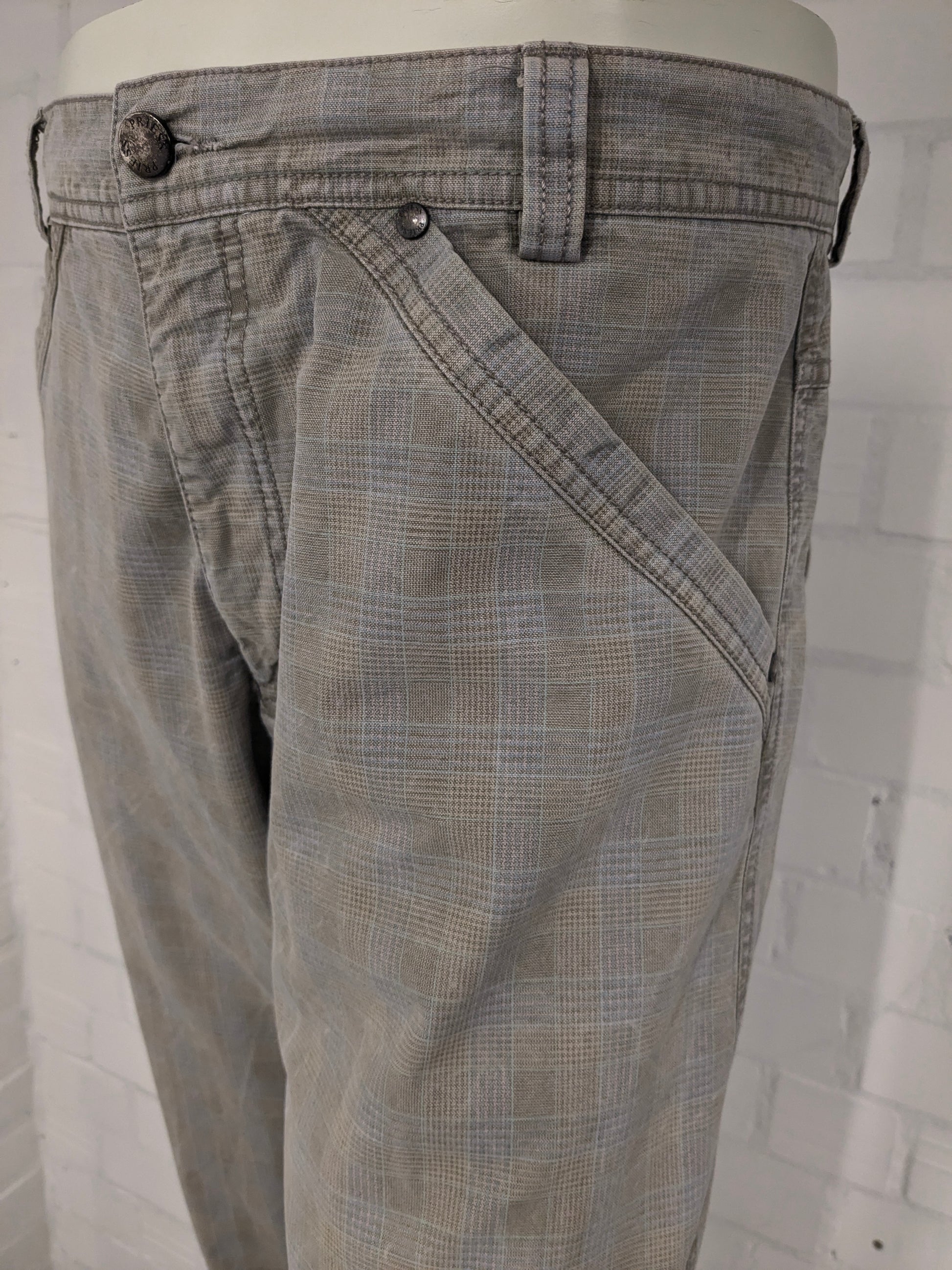 Priess Hommes pants / trousers. Beige blue checked. Size 50 / M.