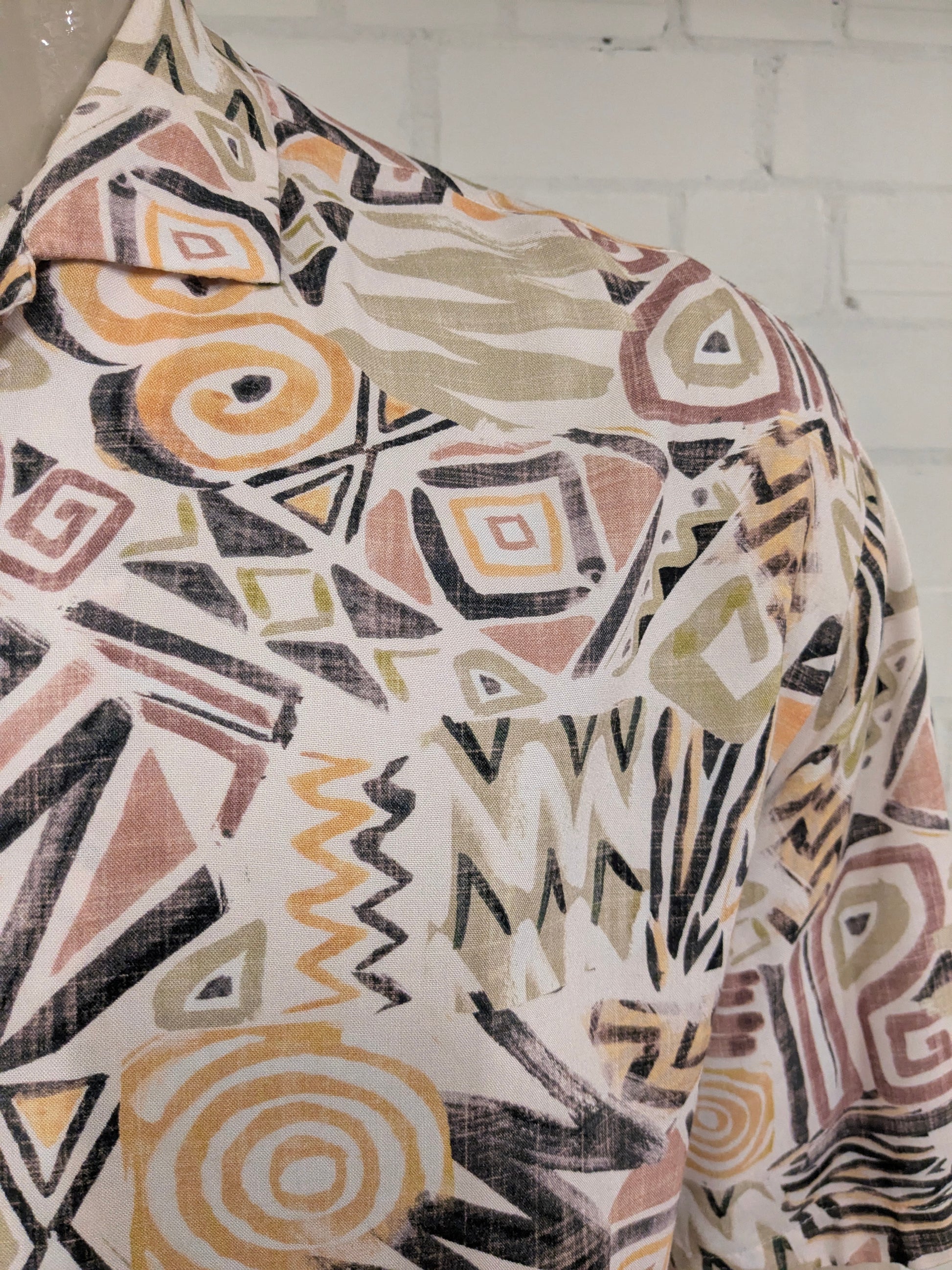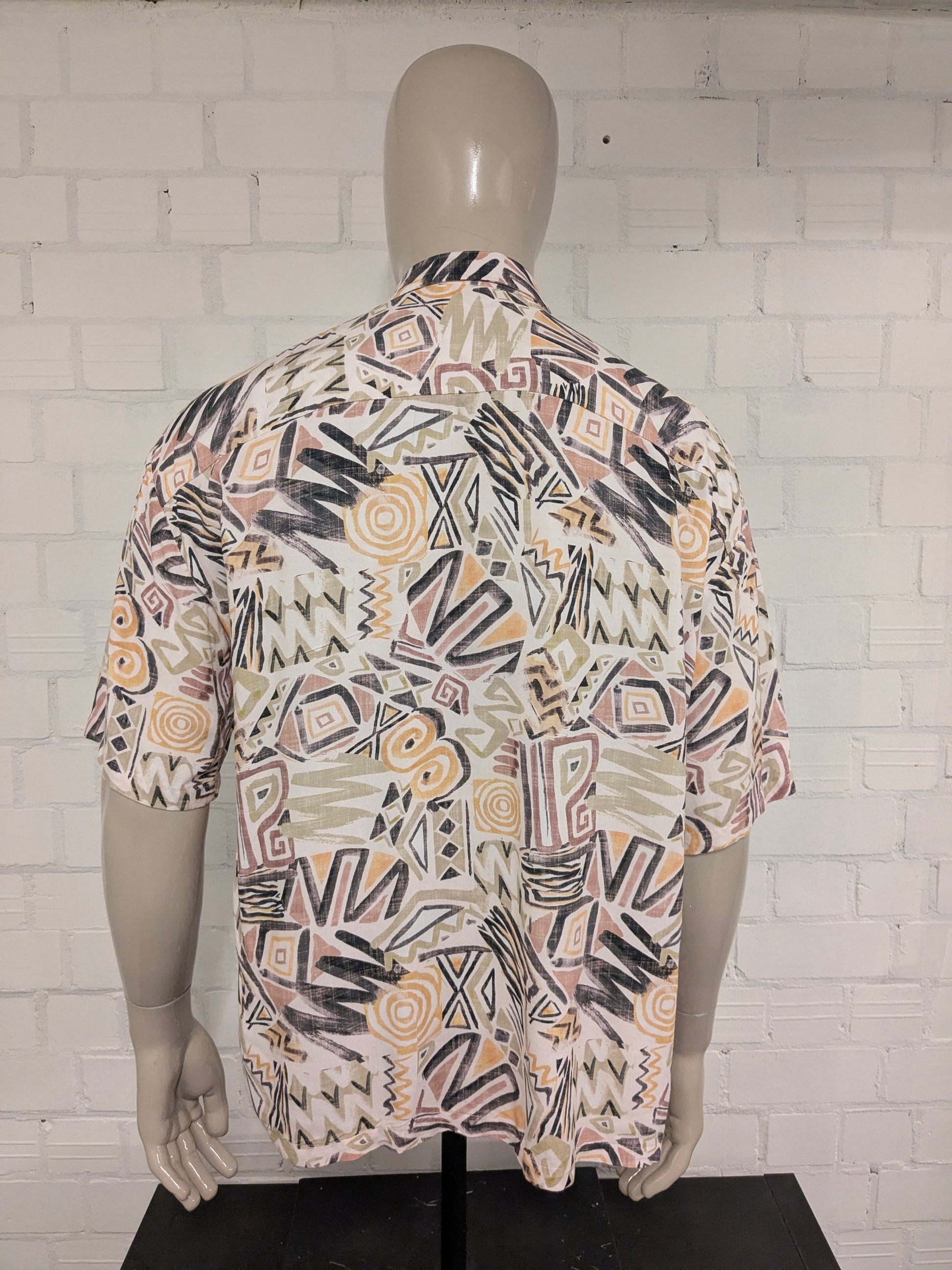 Pull & Bear shirt short sleeve. Green yellow brown print. Size oversized M. to XL.