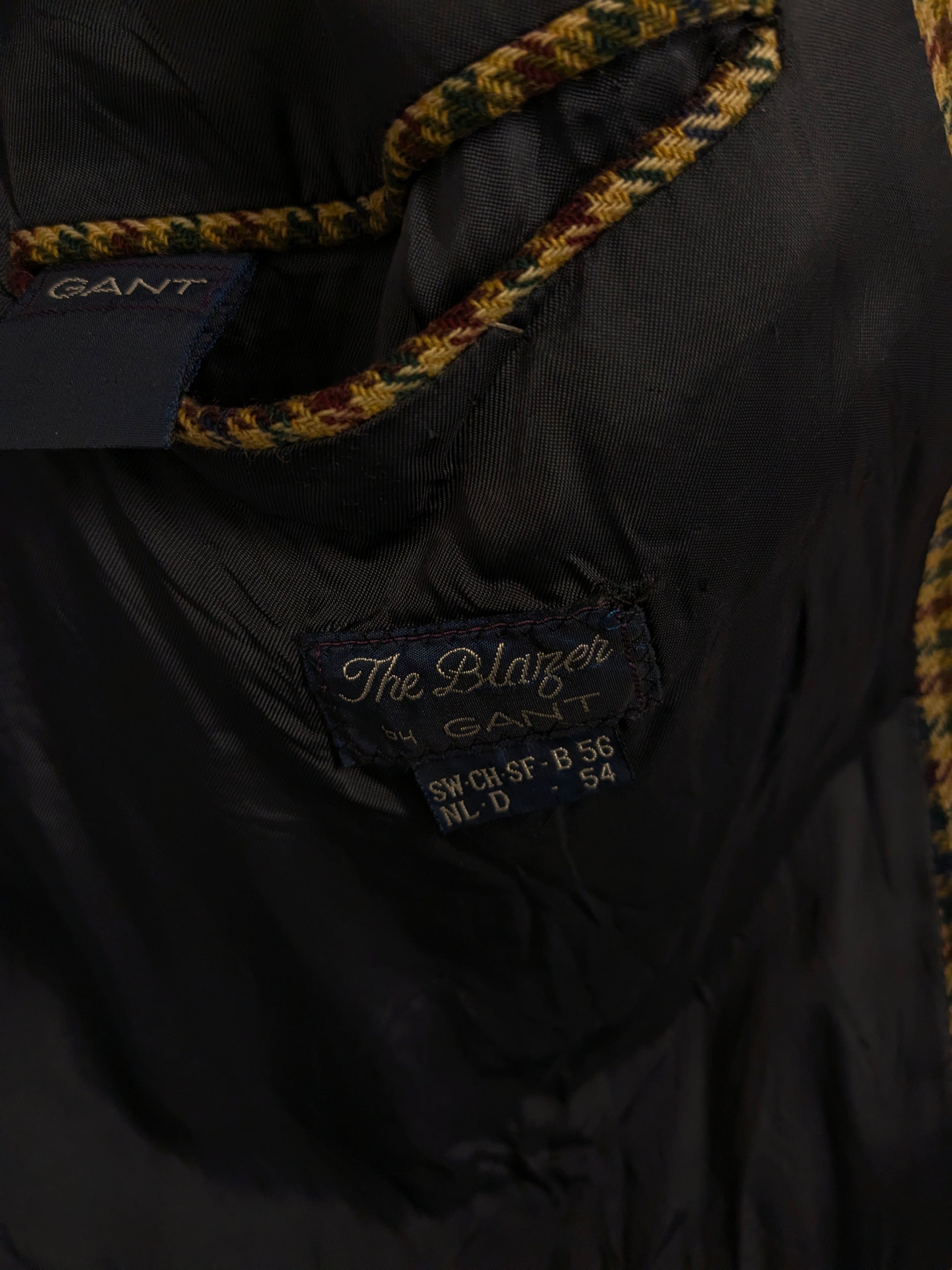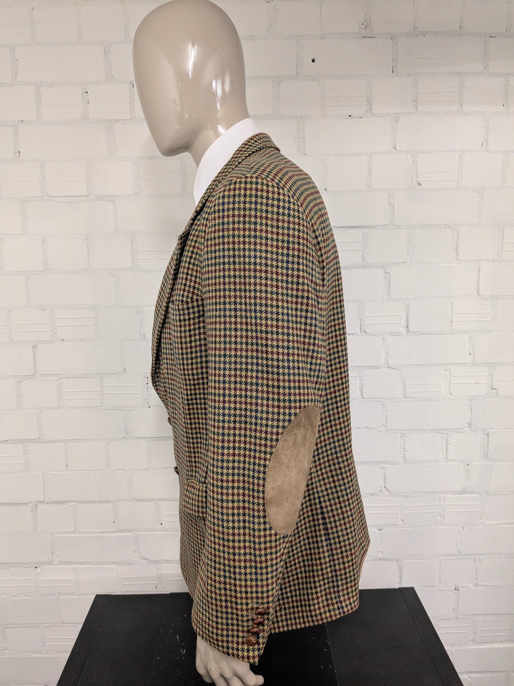 Vintage gant "The Blazer" woolen jacket with elbow strokes. Green red blue blocked. Size 54.