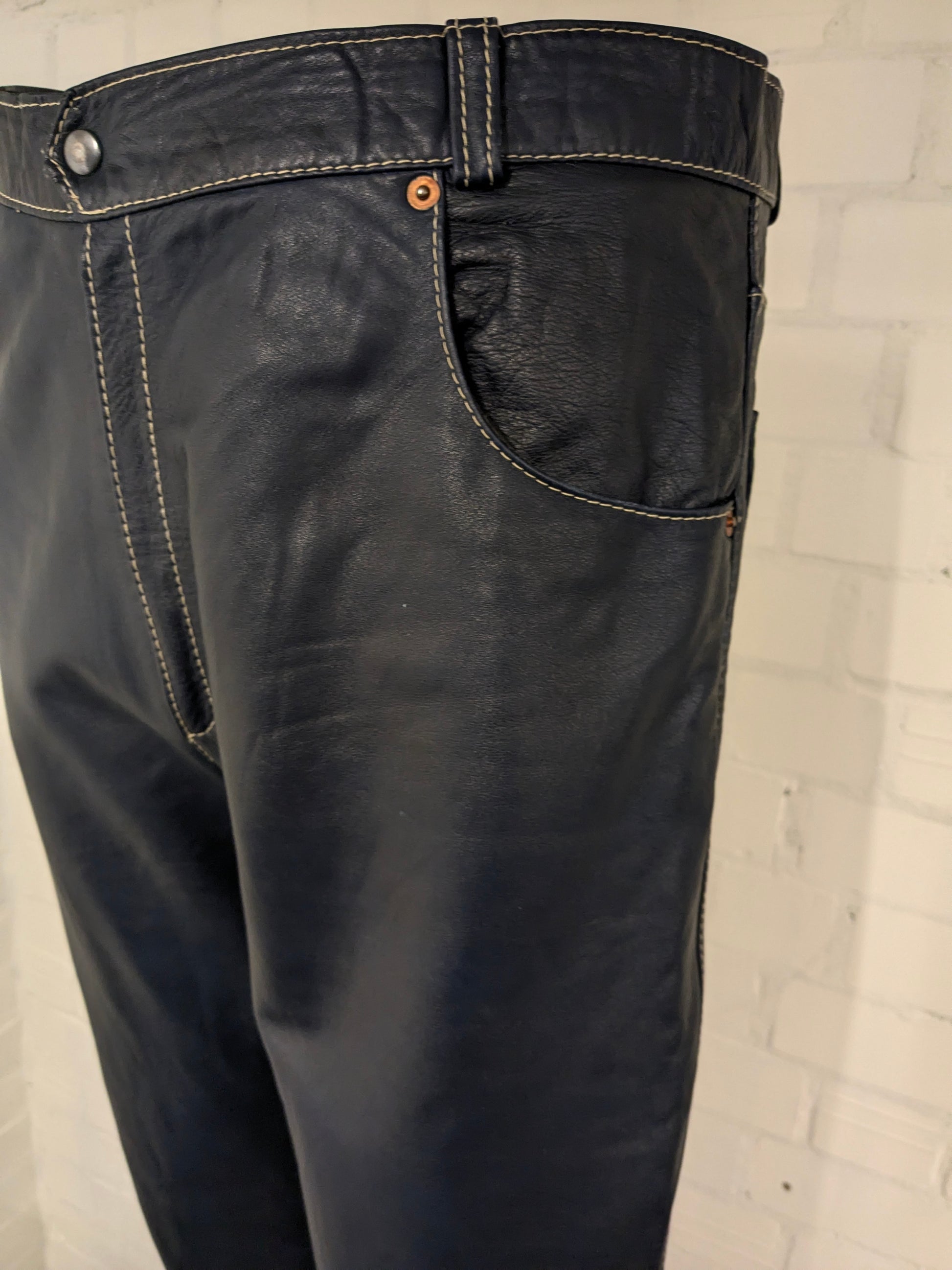 Vintage Leather pants. Dark Blue with Beige stitching. Size 50 / M.