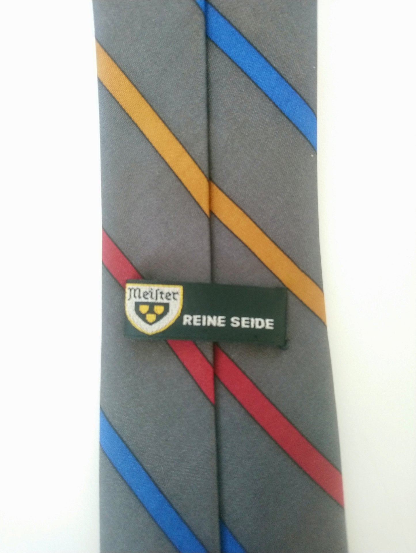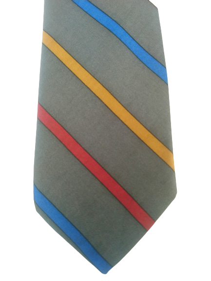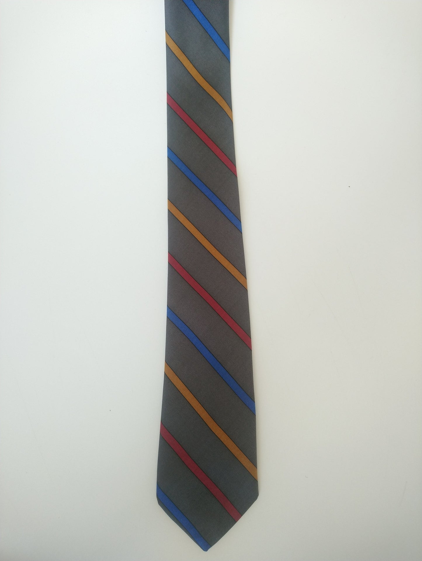 Vintage narrow tie. Gray / red / blue striped. Silk