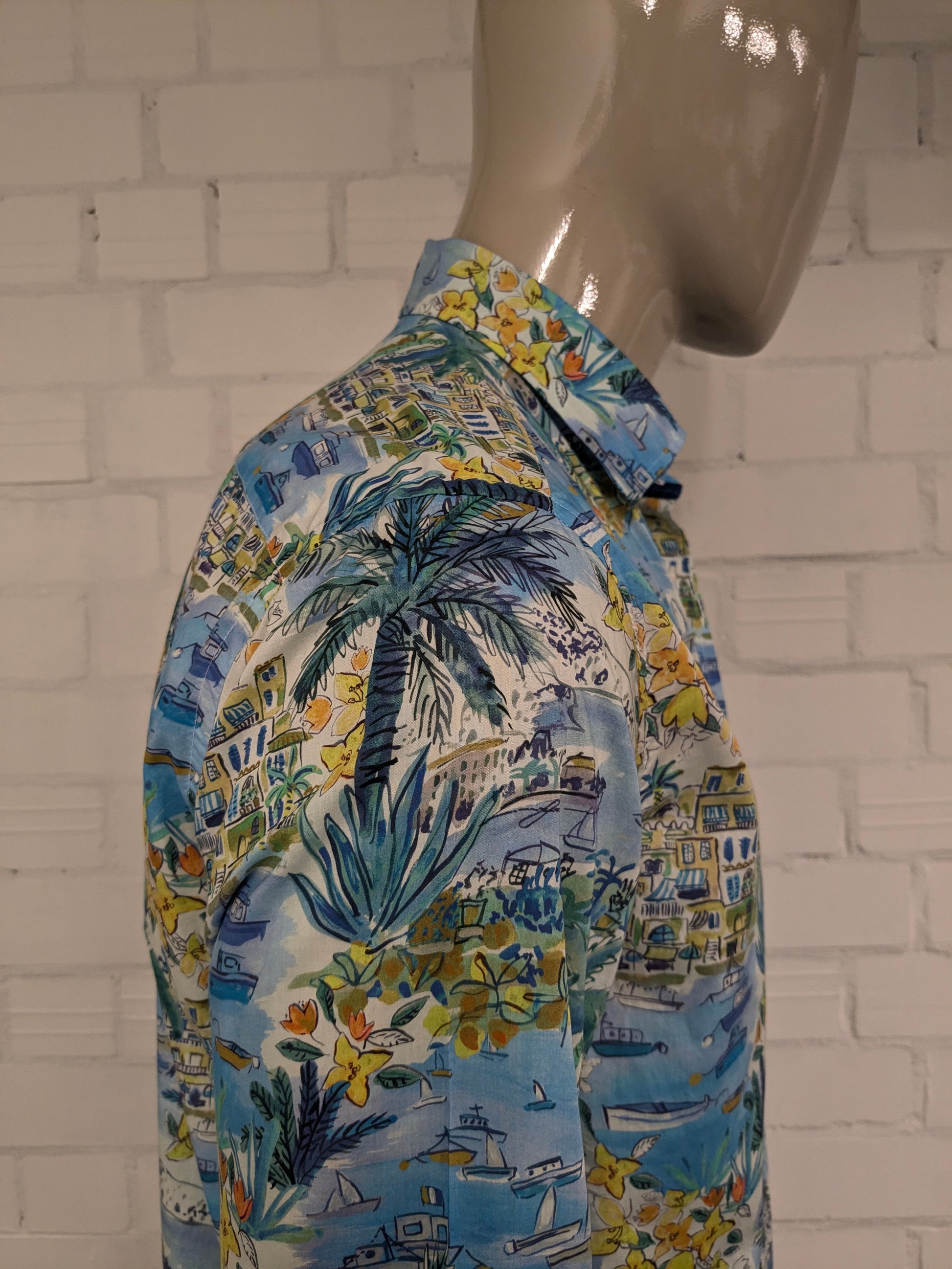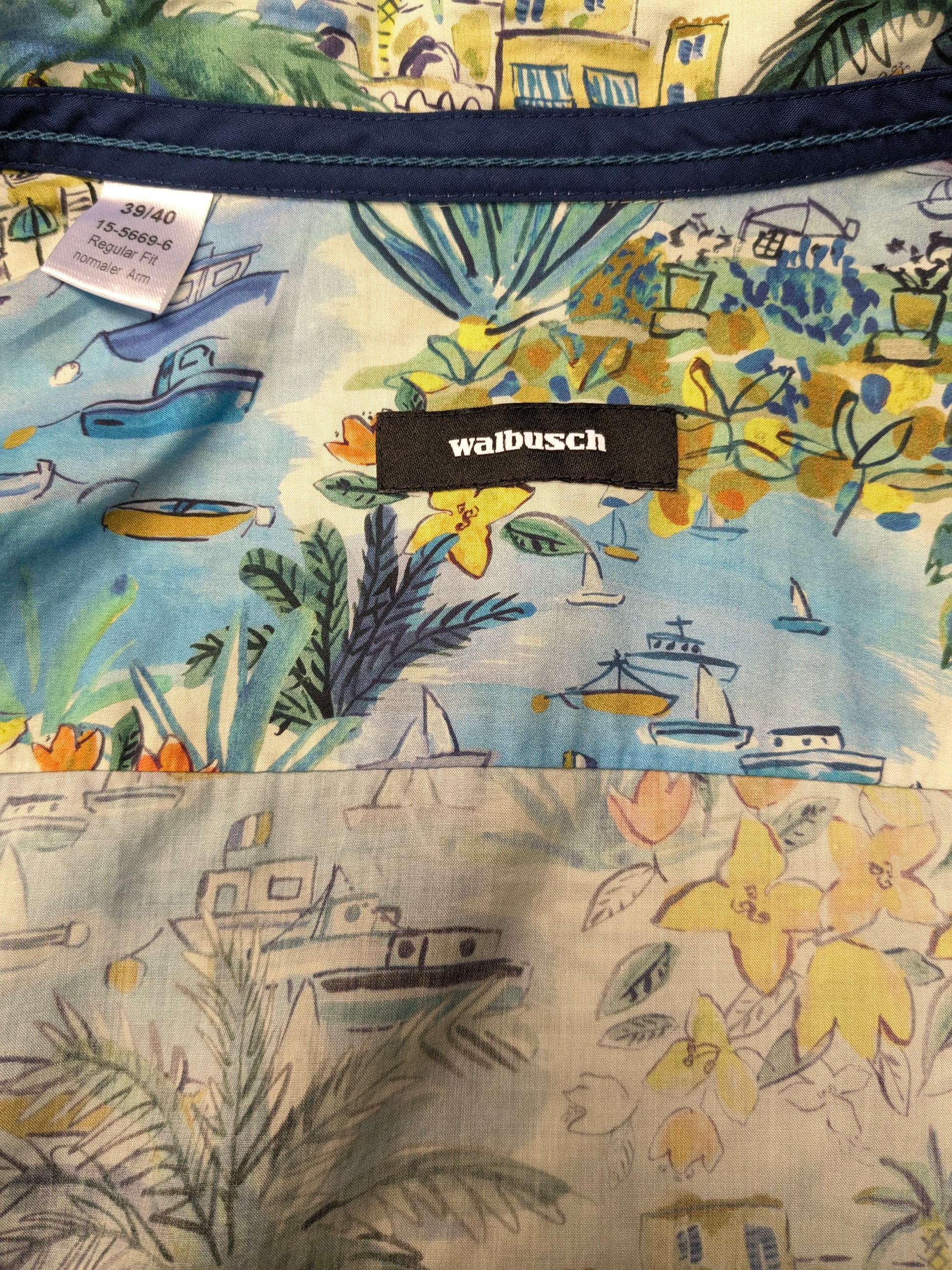 Walbusch print shirt. Blue green yellow print. Size M. Regular Fit.