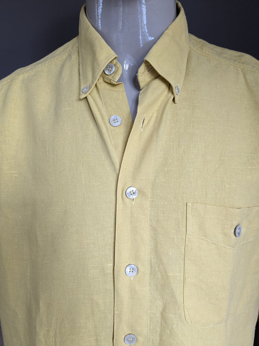 Vintage Pohland Exklusiv Linen Shirt with larger buttons. Yellow colored. Size 2XL / XXL.