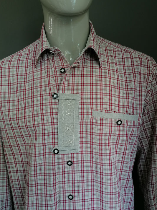 Vintage Landhaus shirt. Beige red checked. Size XL.