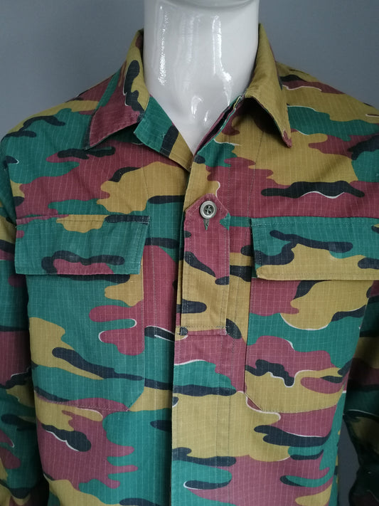Army / Army Vintage Shirt, Belgium. Green brown army print. Size L.