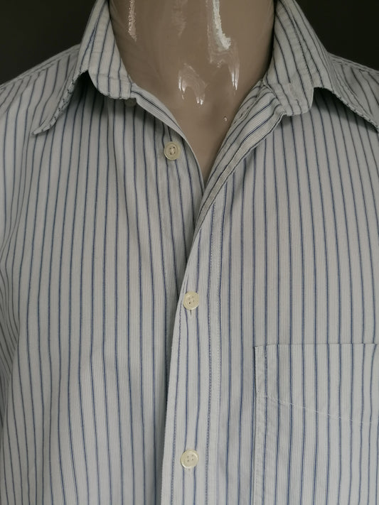 Vintage Him Collection Shirt. Blue beige striped. Size XXL / 2XL.