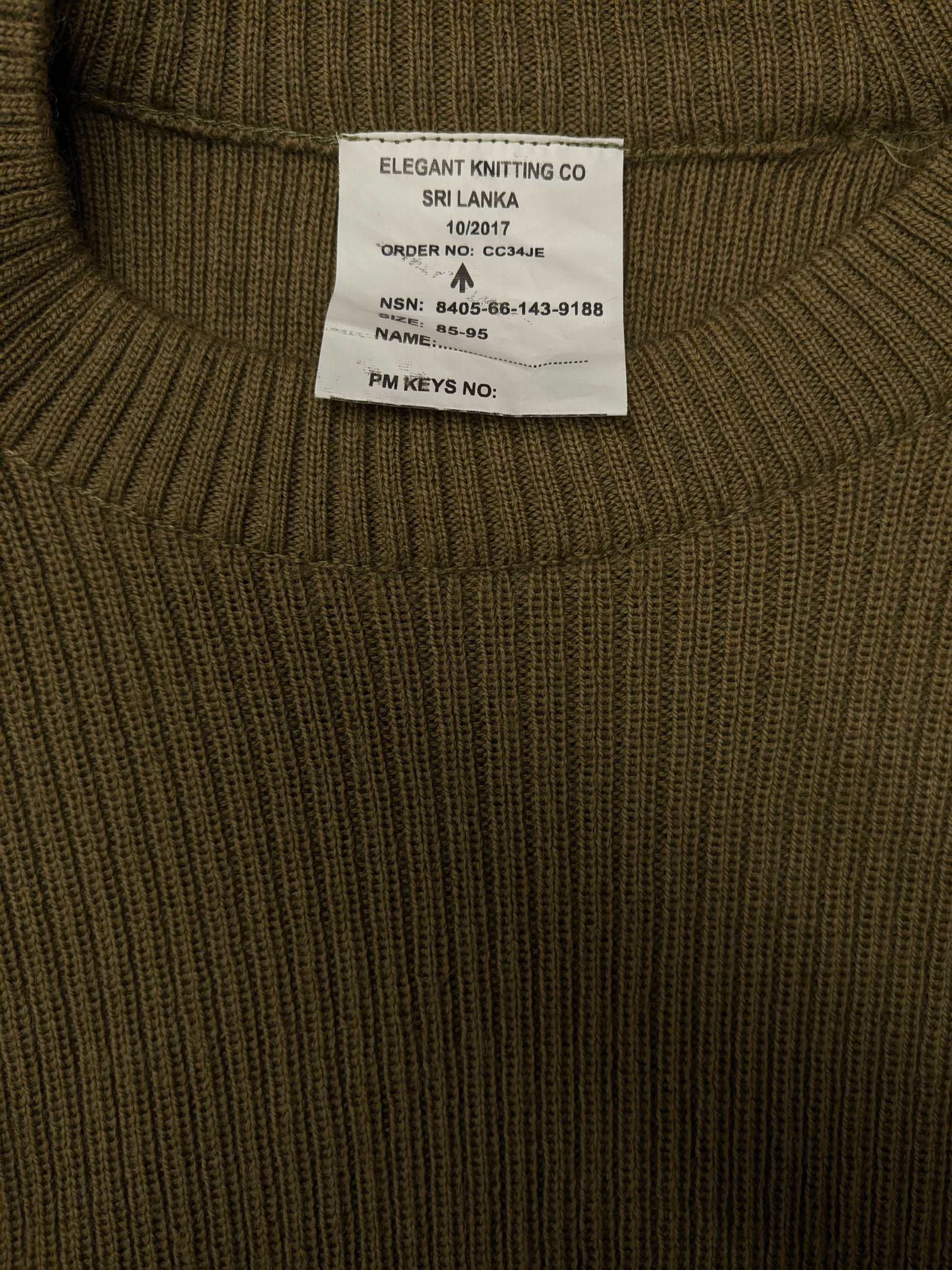 Army / army sweater with shoulder and elbow patches. Colored green. Size S.
