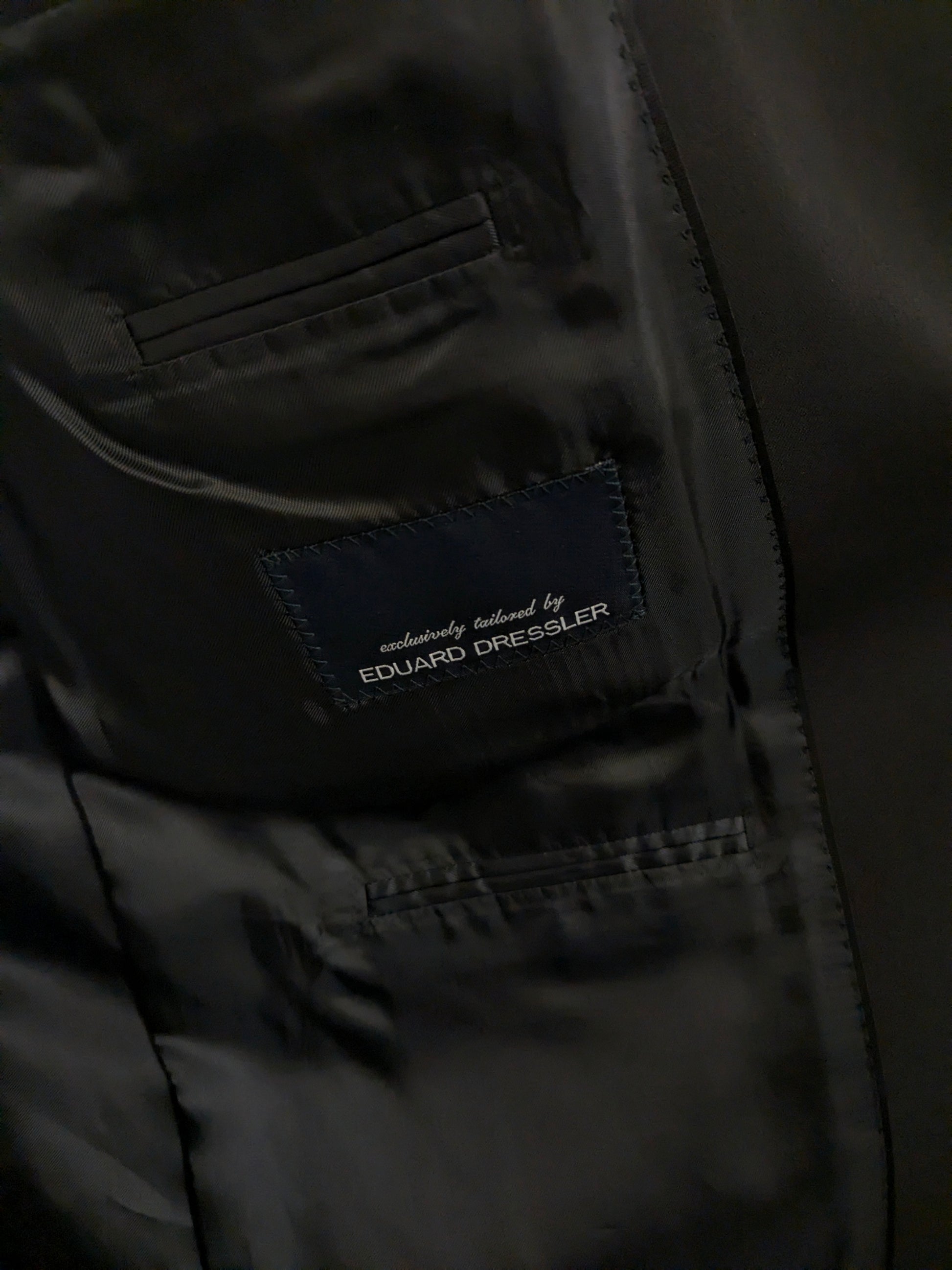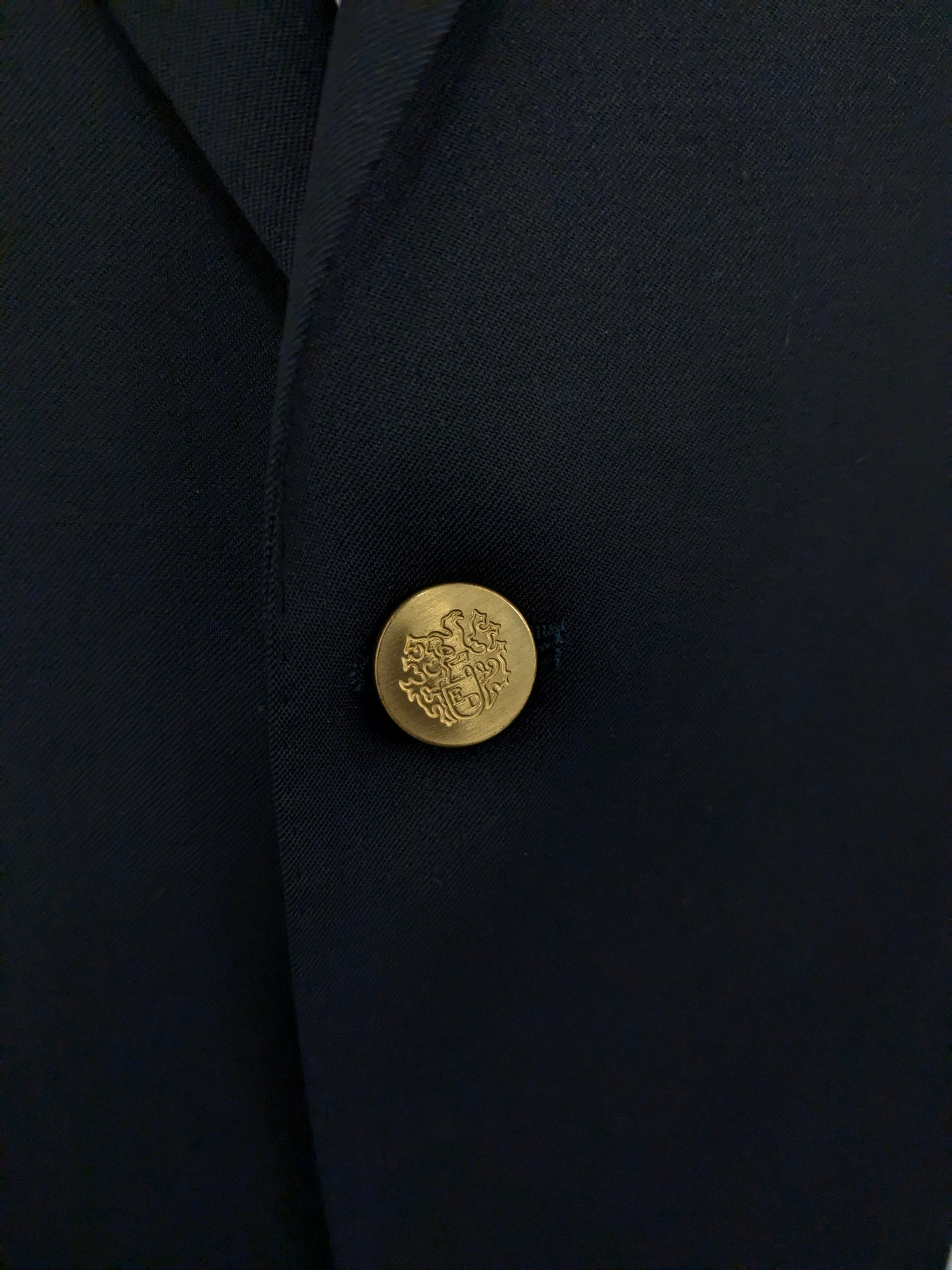 Eduard Dressler Vintage Colbert. Dark blue with gold -colored knots. Size 26 (52 / L).