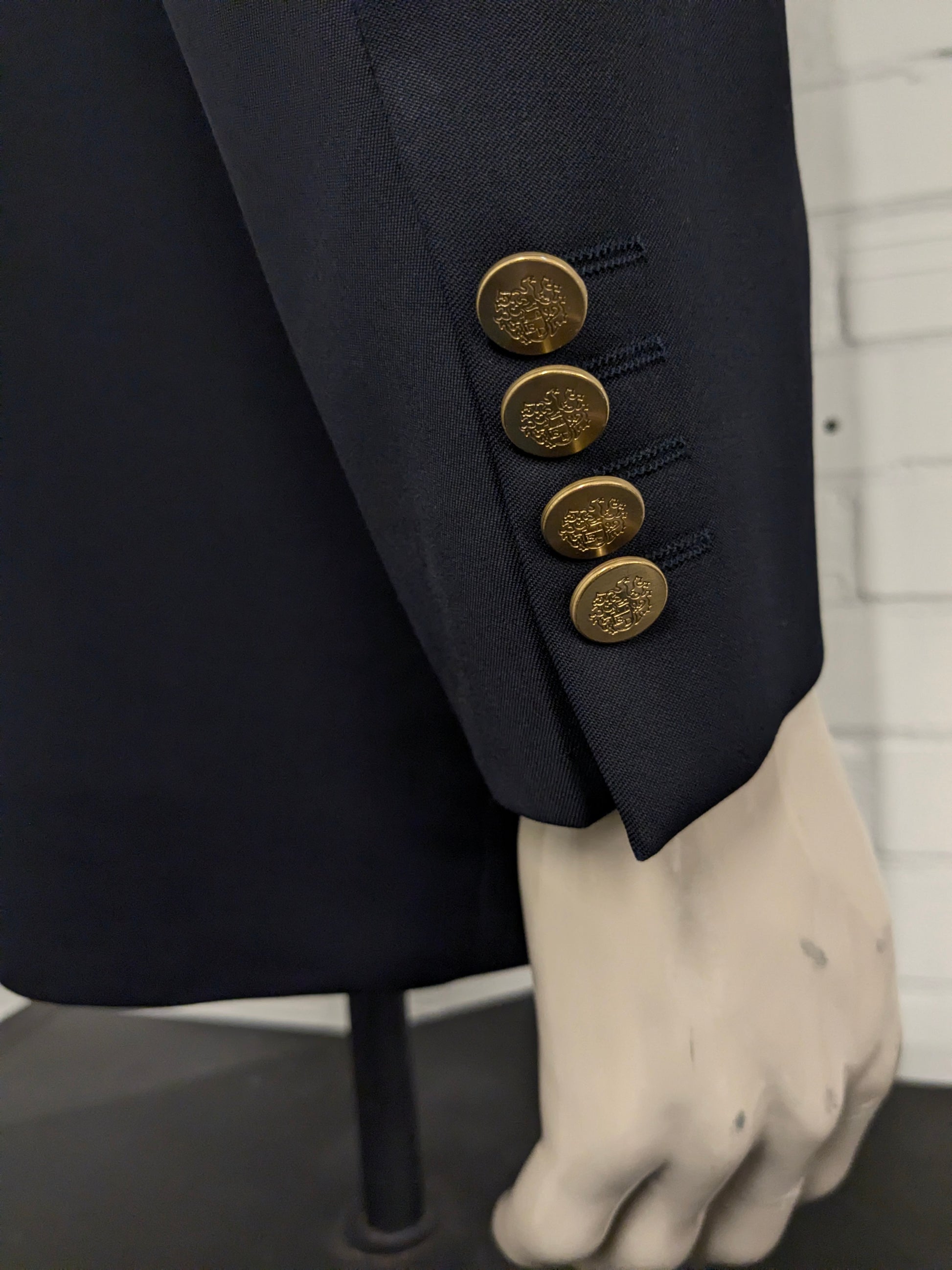 Eduard Dressler Vintage Colbert. Super 100's. Dark blue with gold -colored knots. Size 26 (52 / L).