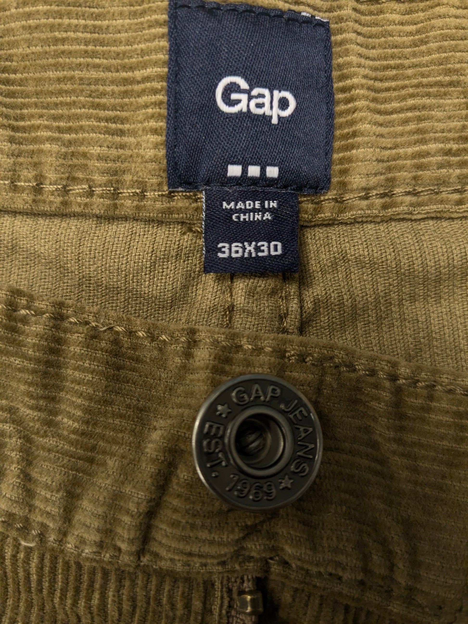 Gap Ribbroek. Colored green. Size W36 - L30.