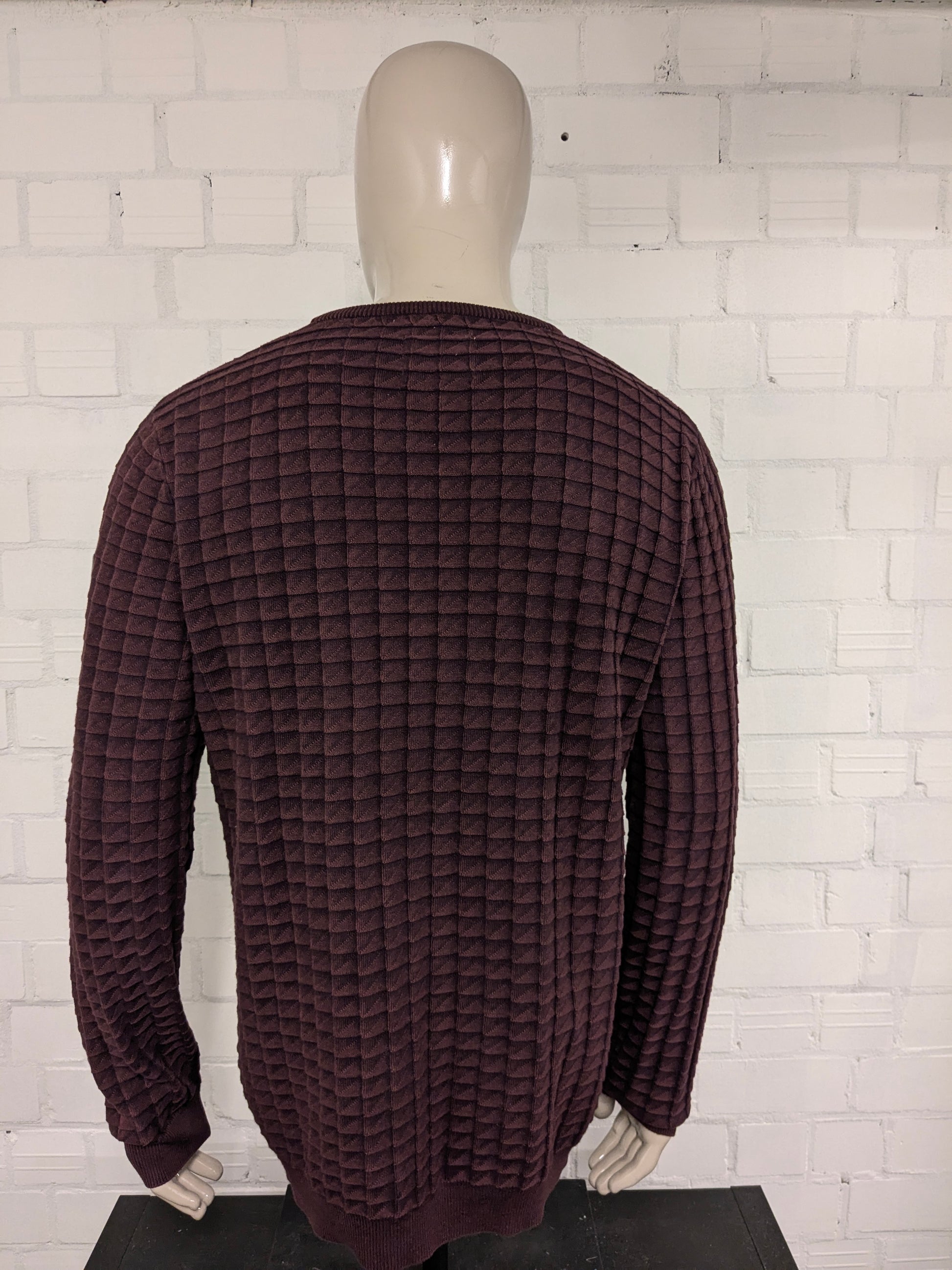 No excess casual sweater. Bordeaux mixed with tangible motif. Size XL.