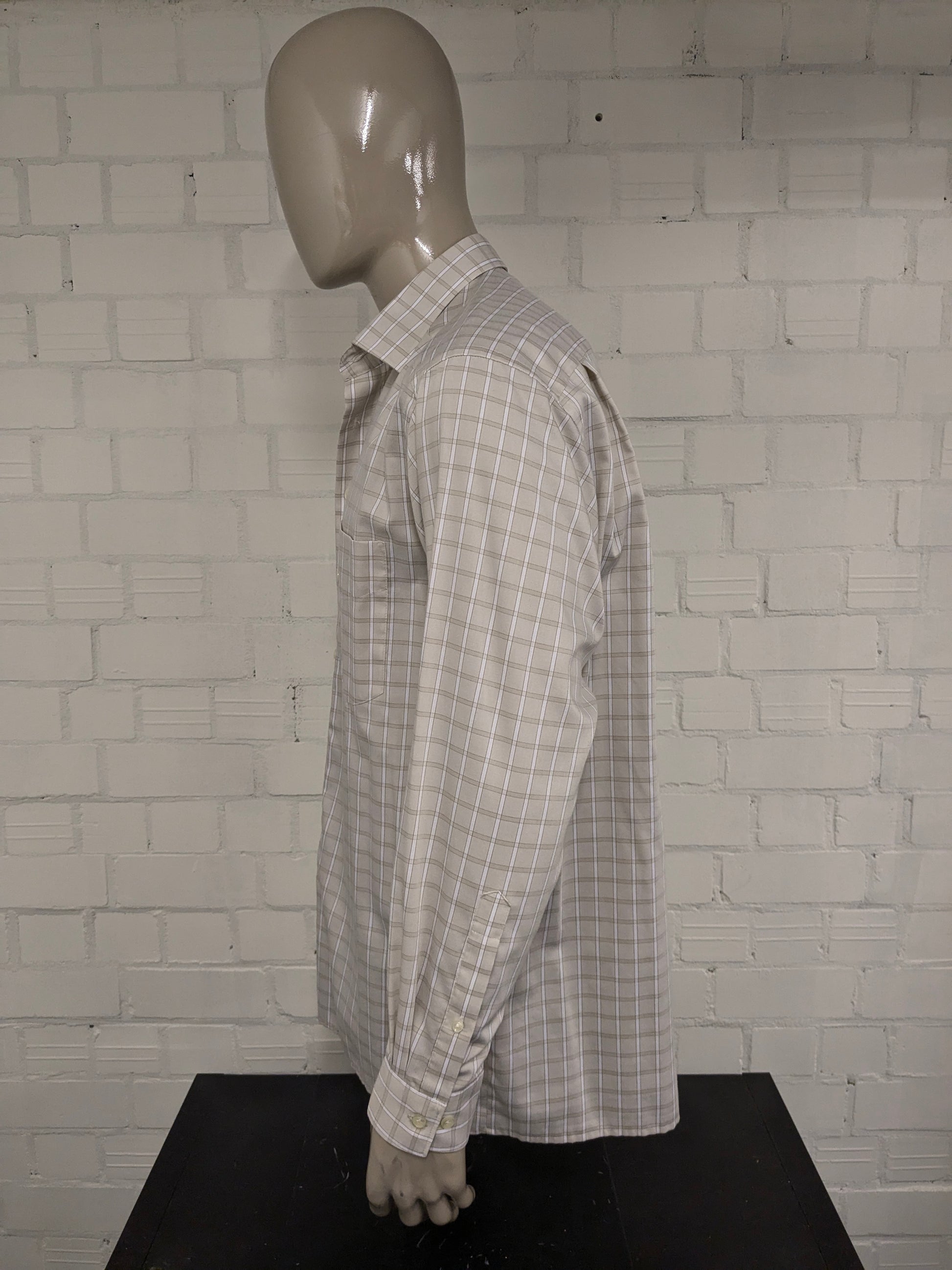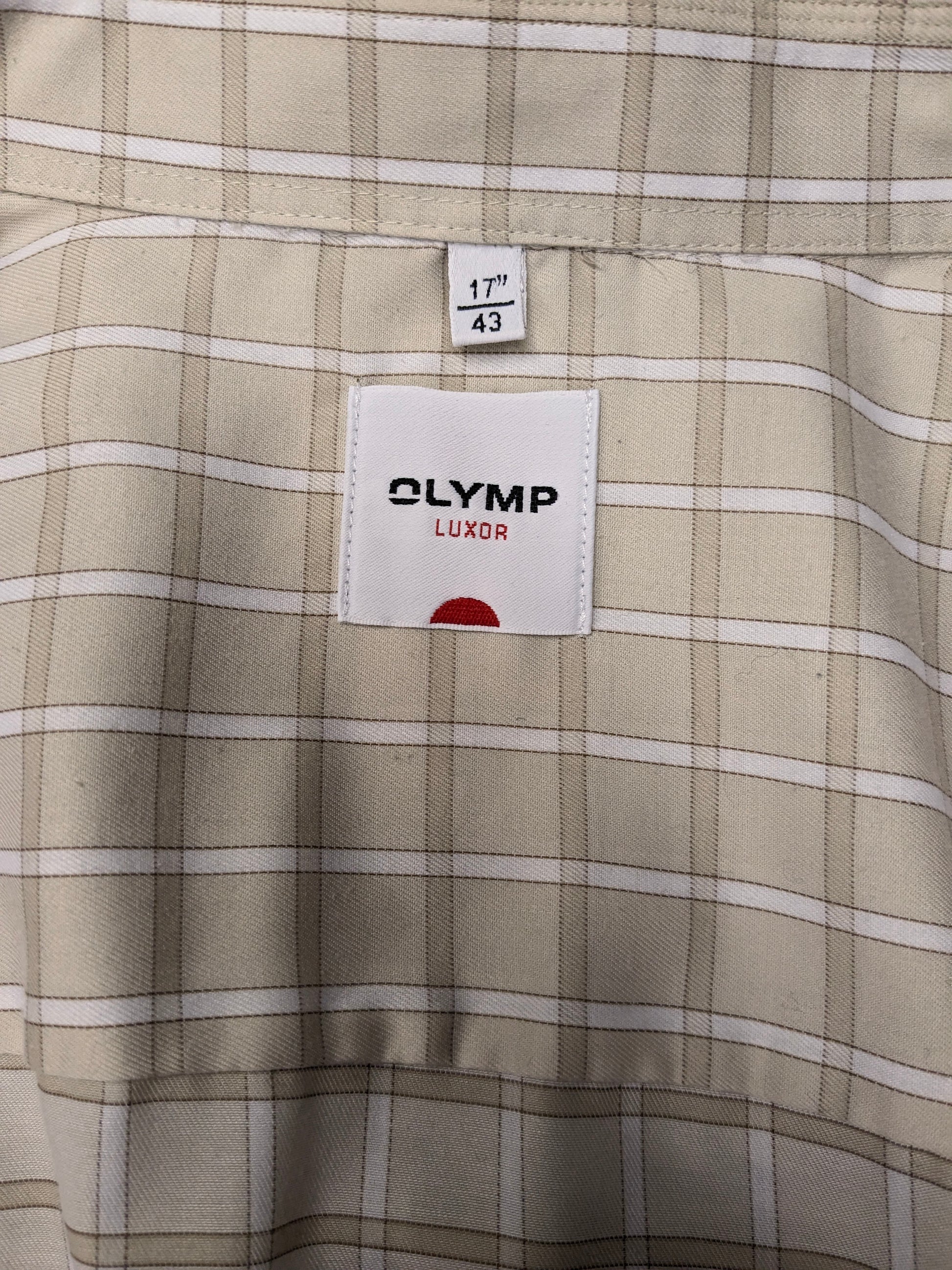 Olymp Luxor shirt. Beige White checked. Size 43 / XL.