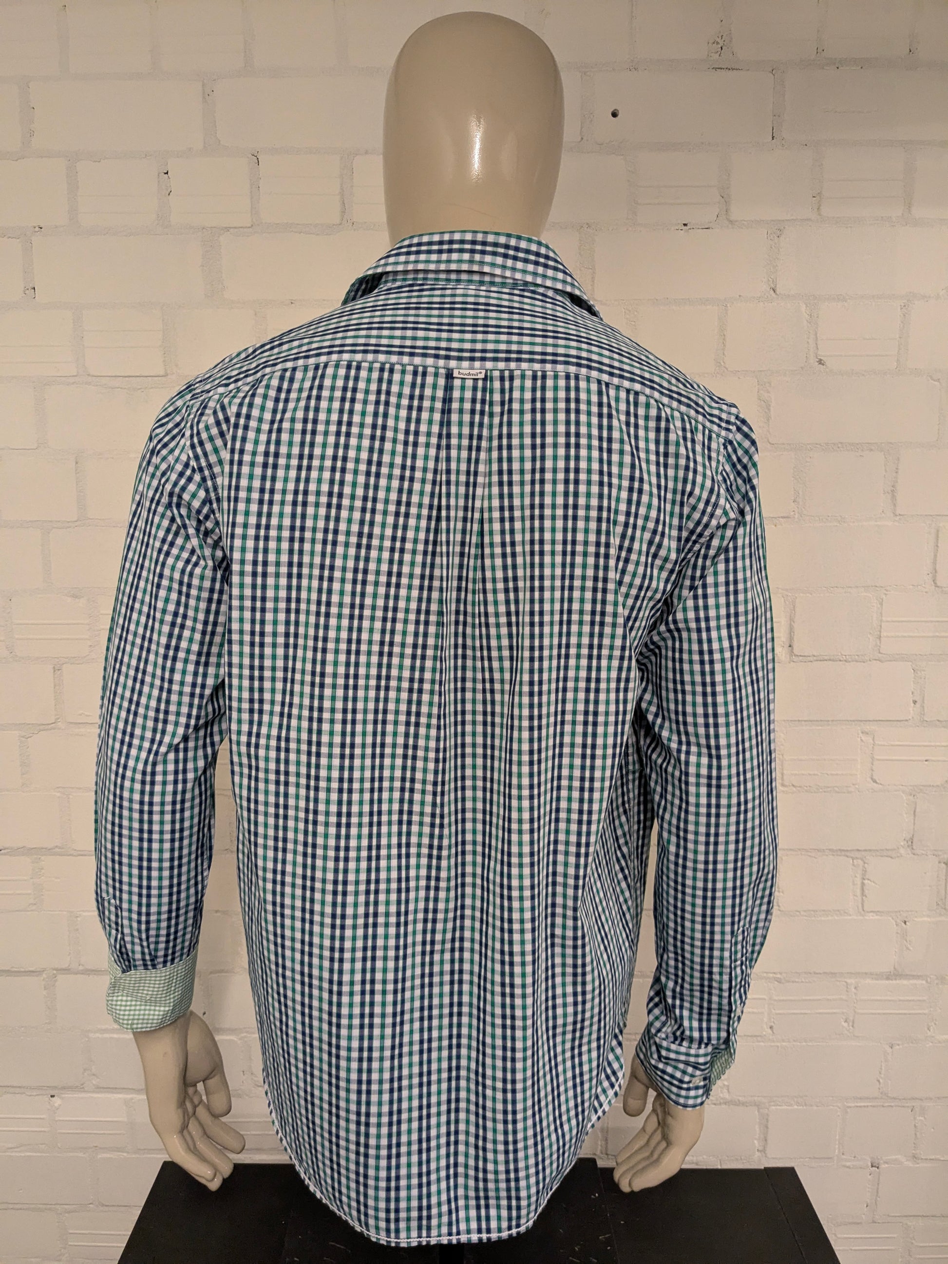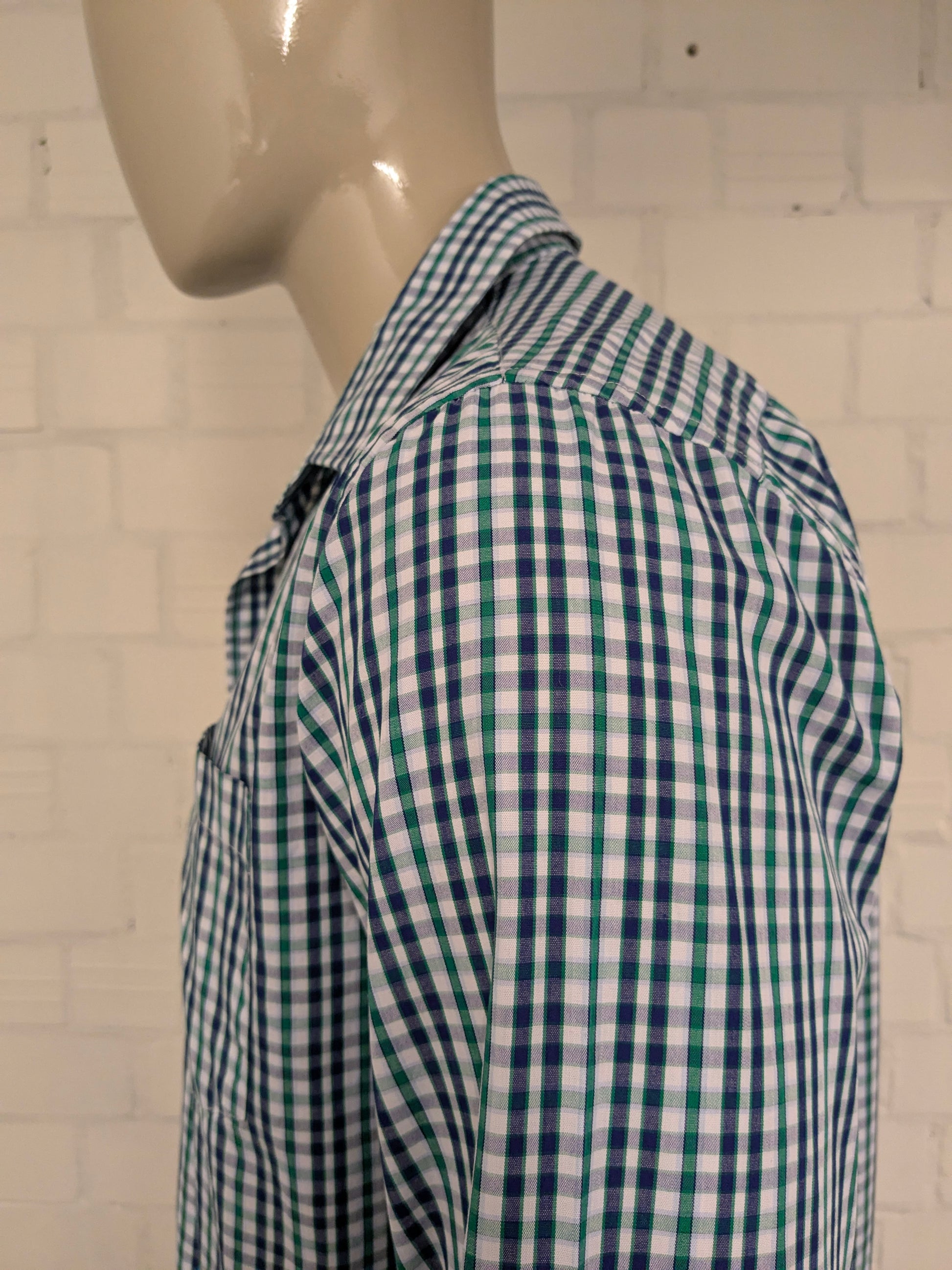 Vintage Budmil shirt. Blue green white blocked. Size XL.