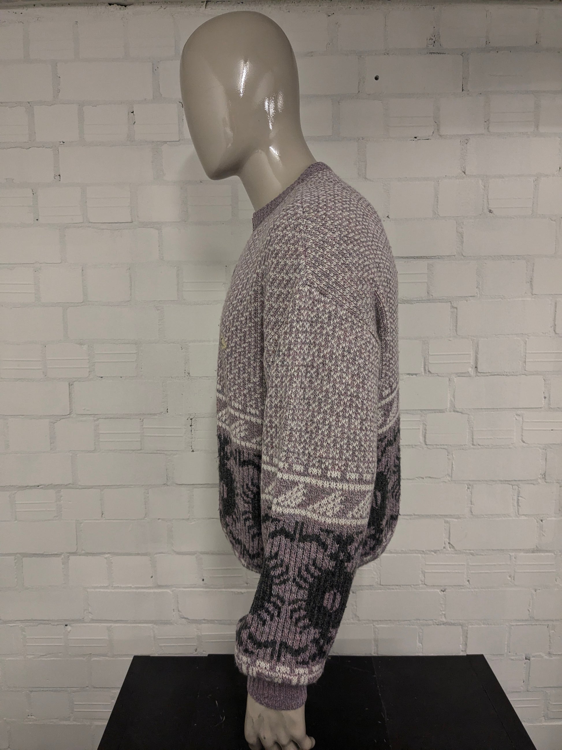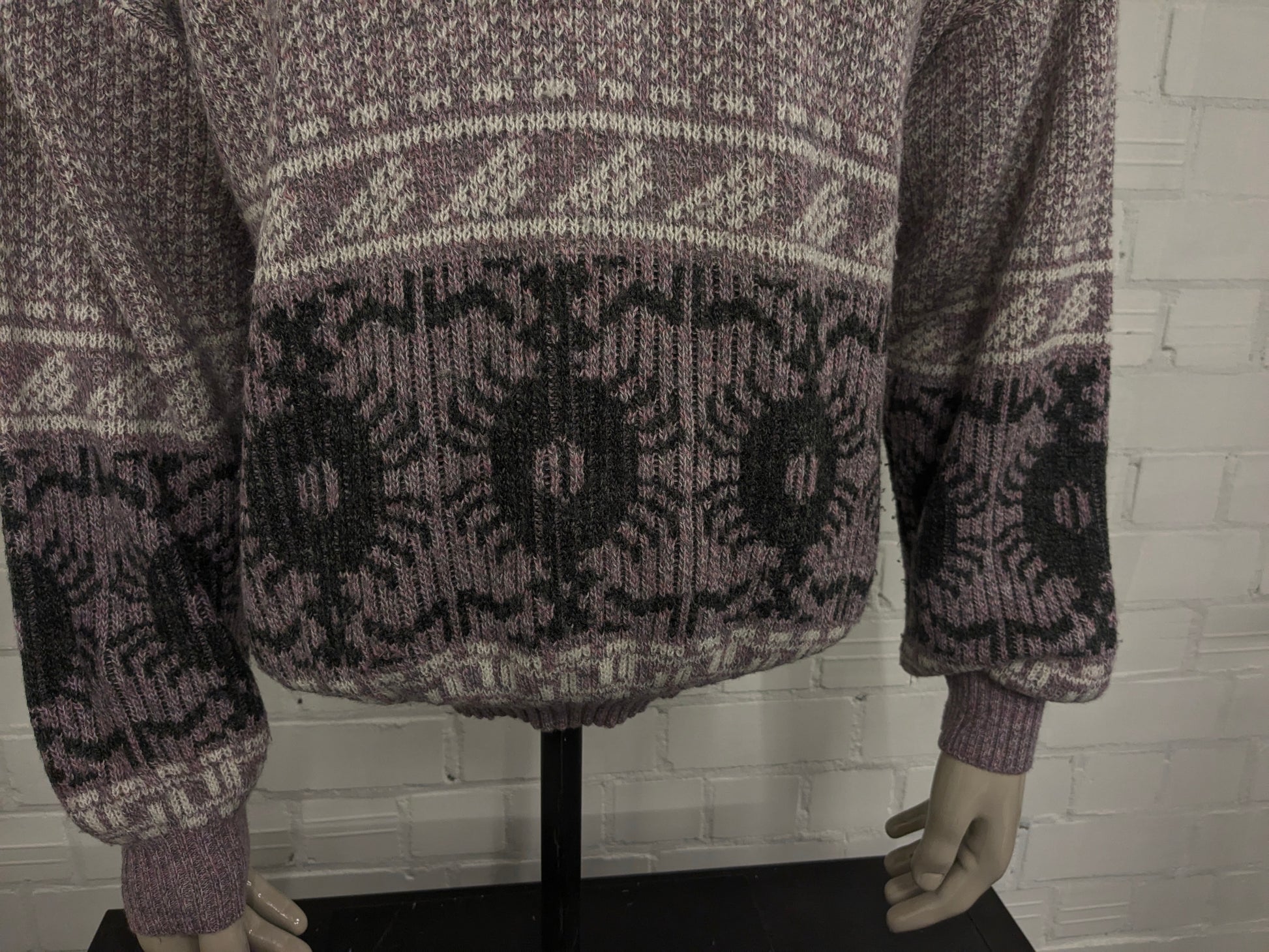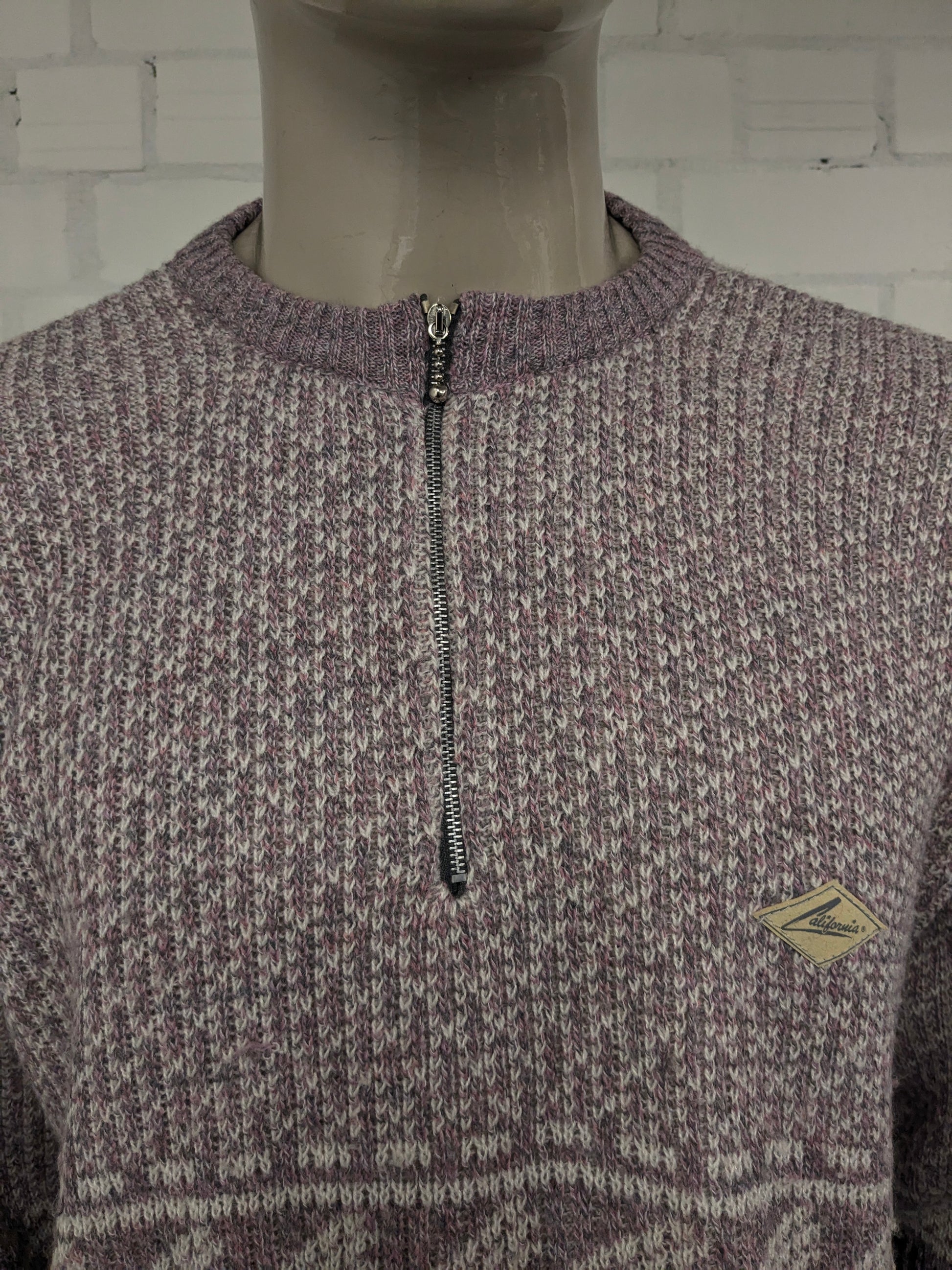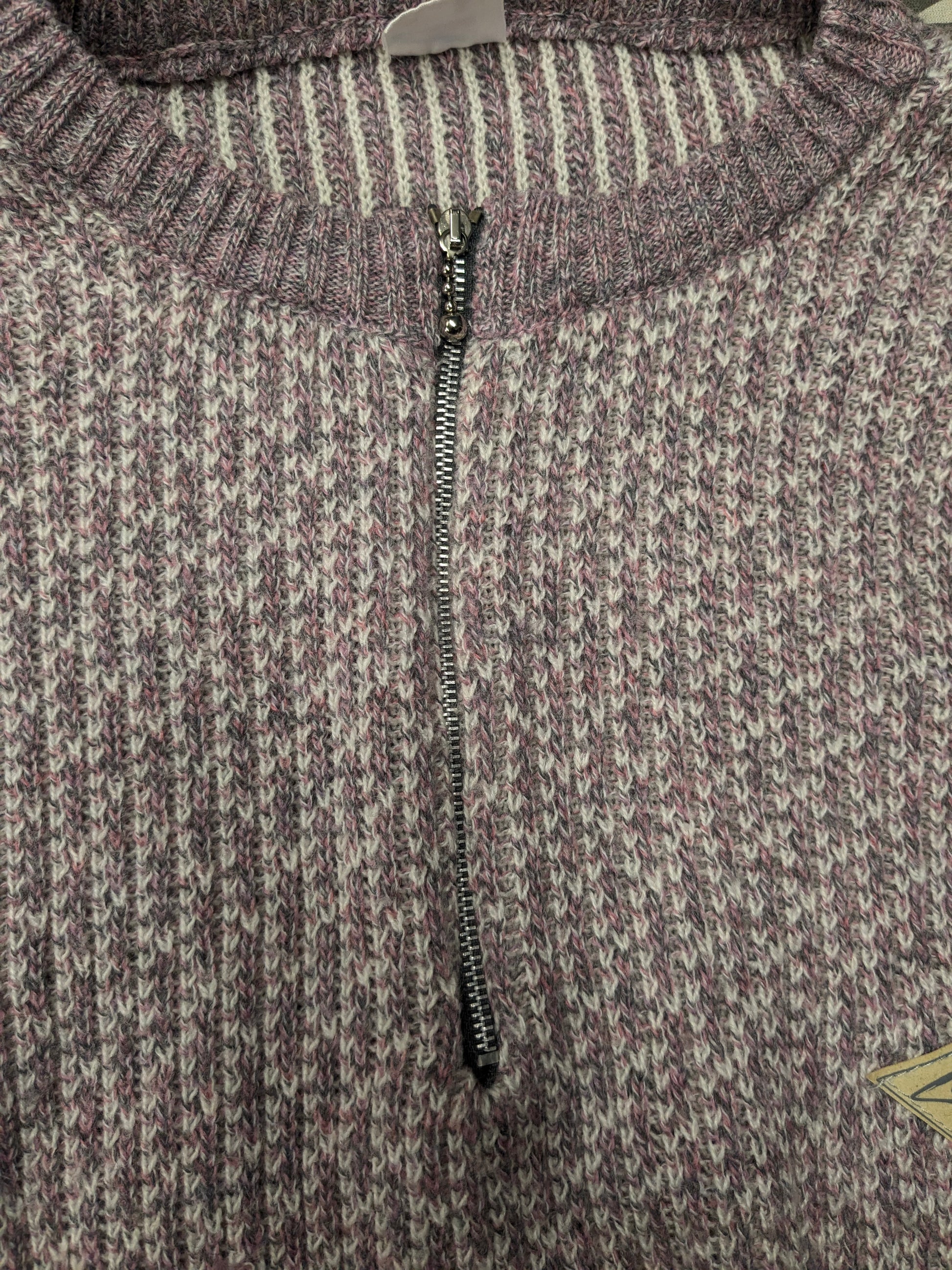 Vintage California Wool sweater with zipper. Pink White Gray mixed. Size XL. 30% Wool.