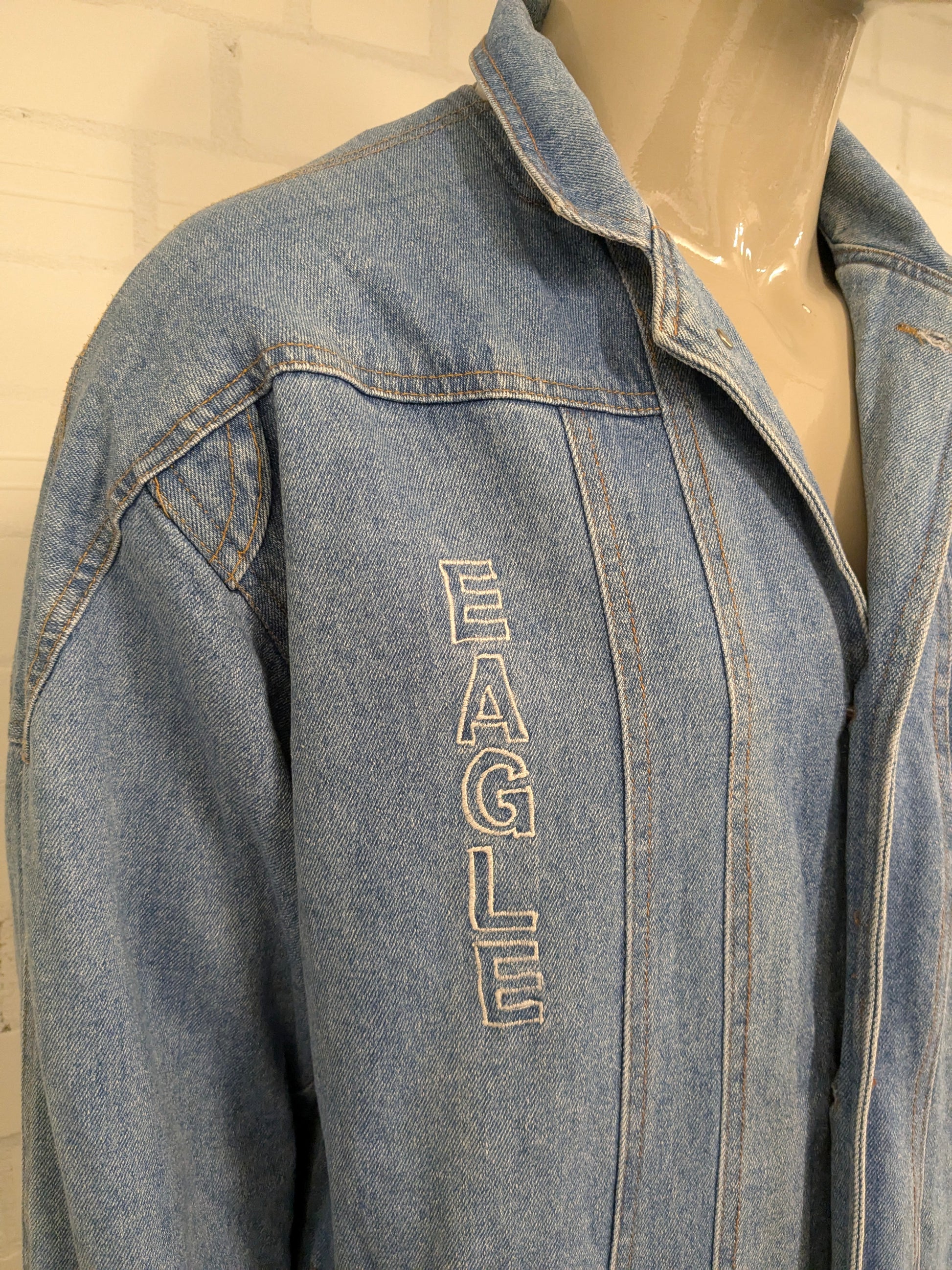 Vintage fuiore light lined jeans / denim jacket. Light blue colored. Size XL.