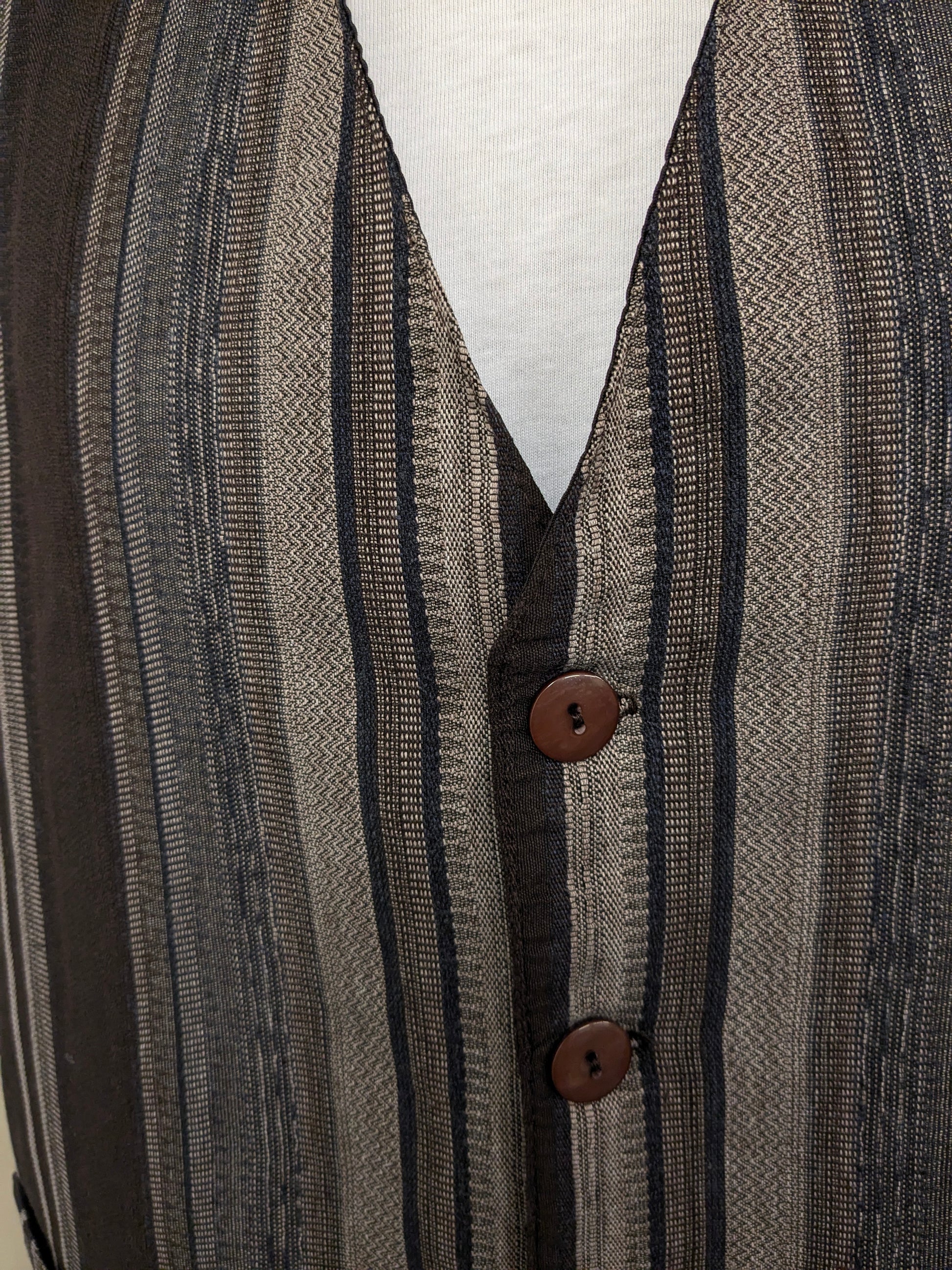Vintage New Fast waistcoat. Brown dark blue lilac striped. Size XL.