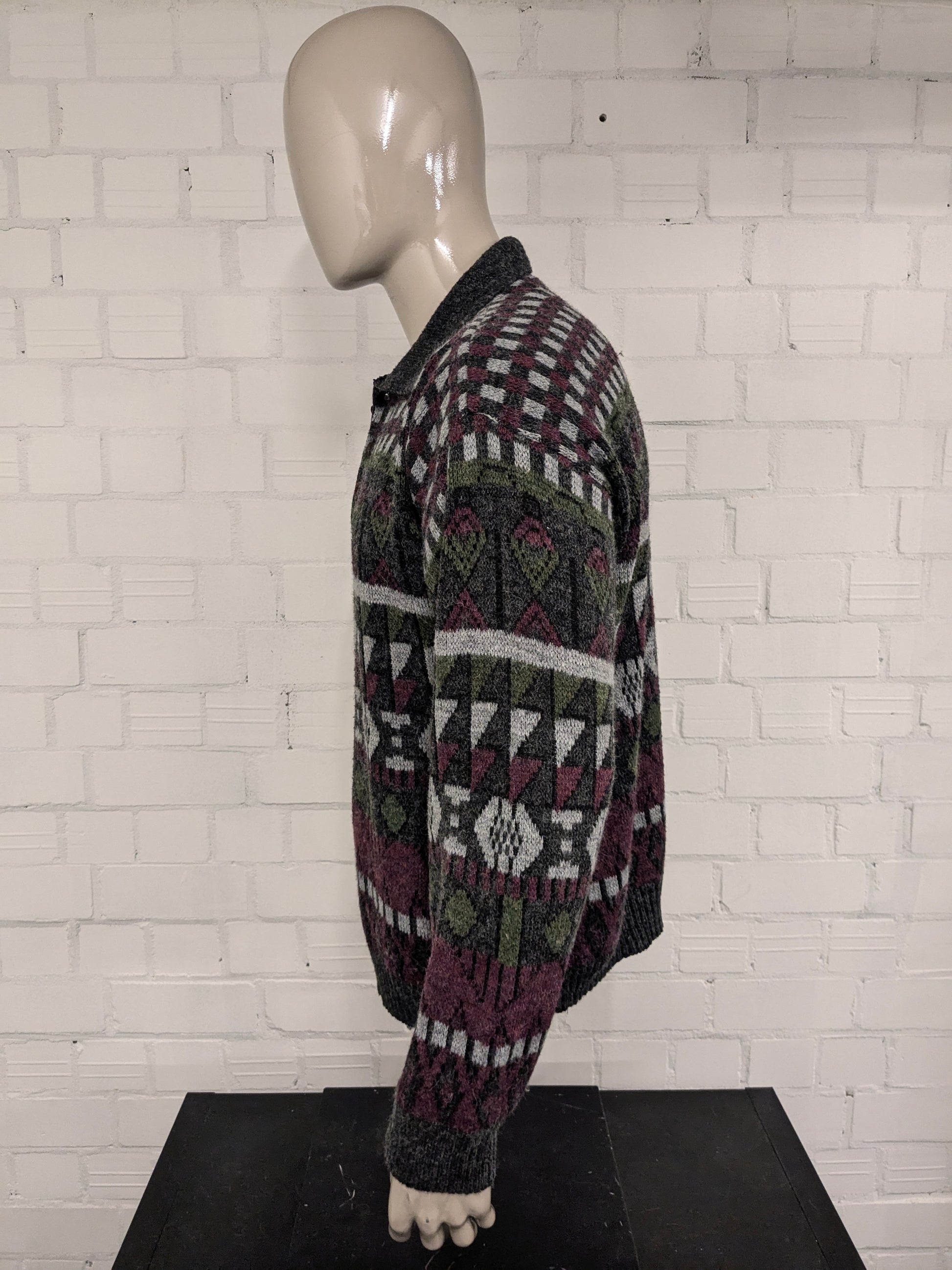 Vintage Wool polo sweater. Green Gray Red colored. Size 2XL / XXL.