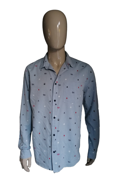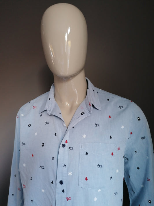 Xmas / Christmas / Beary Xmas print shirt. Light blue. Size XL.