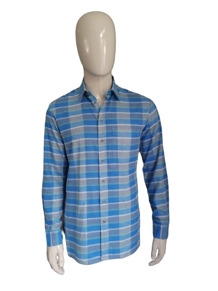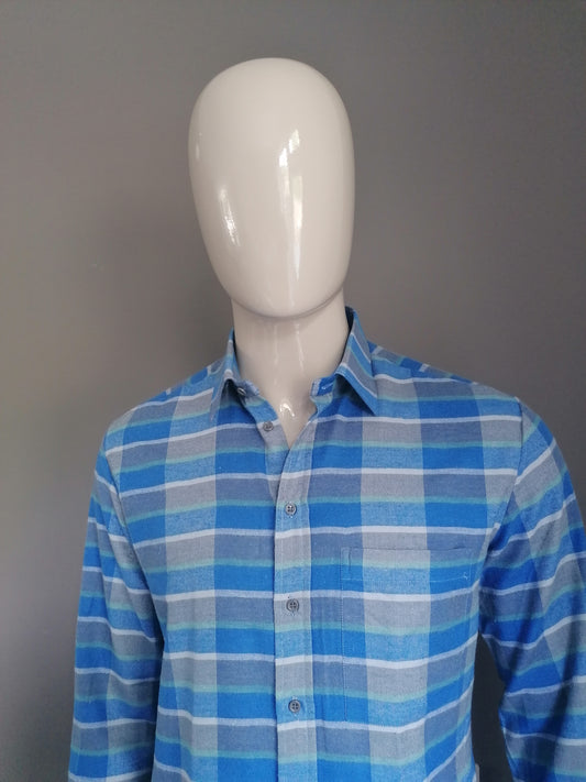 Vintage Seid Sticker Flannel shirt. Blue green checked. Mt L.