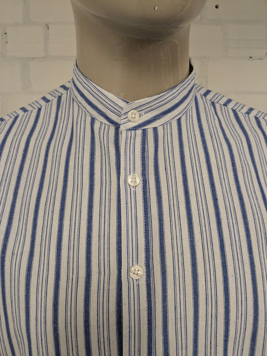Kronstadt overhemd met boeren- farmer- korte kraag. Blauw Wit gestreept. Maat L.