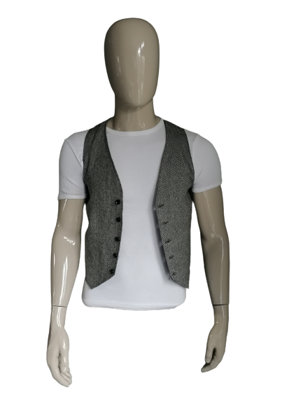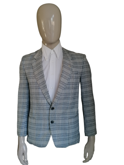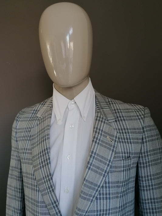 Van Gils Vintage Double Breasted Woolen jacket with point Revers. Gray blue checked. Size 54 / L.