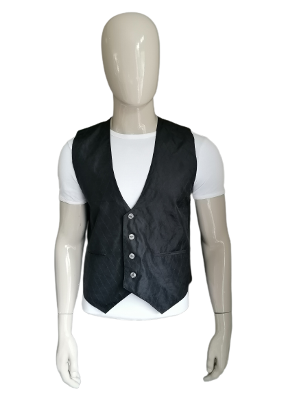 Vintage waistcoat. Blue black brown green pink motif. Green back. Size S.