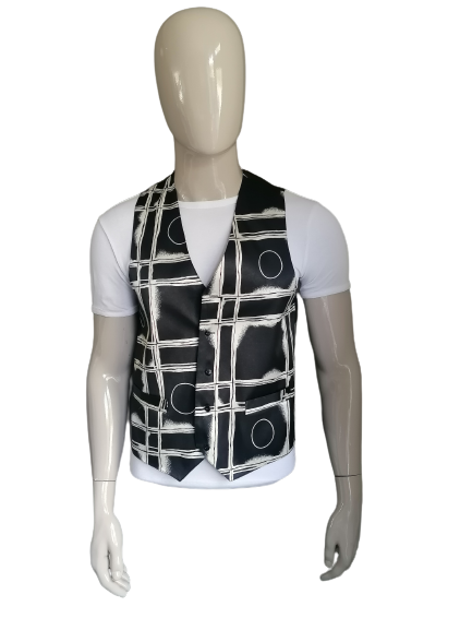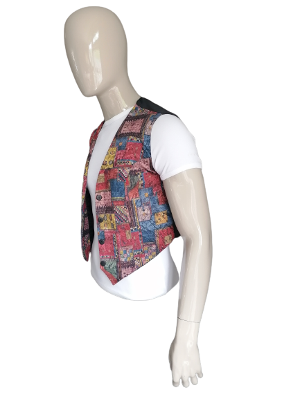 Vintage waistcoat. White red green yellow blue print. Size S.