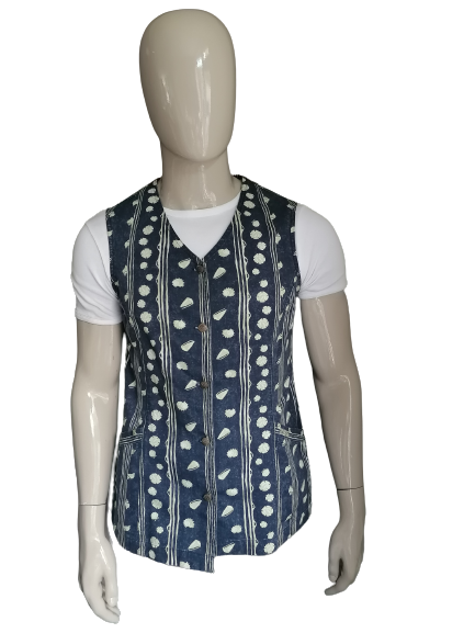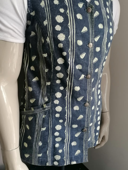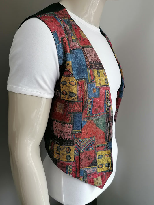 Vintage waistcoat. Blue orange green red motif. Gray back. Size S.