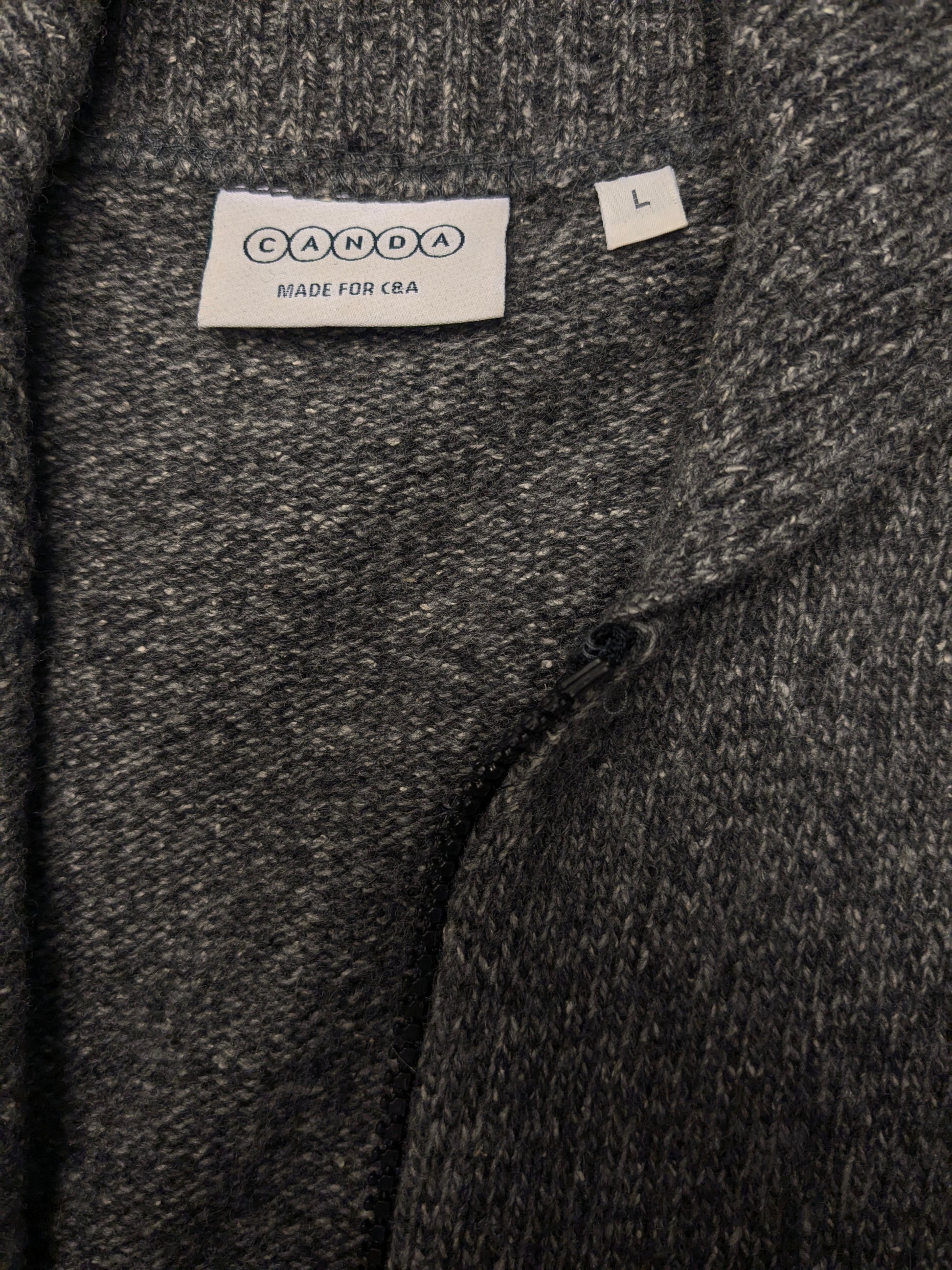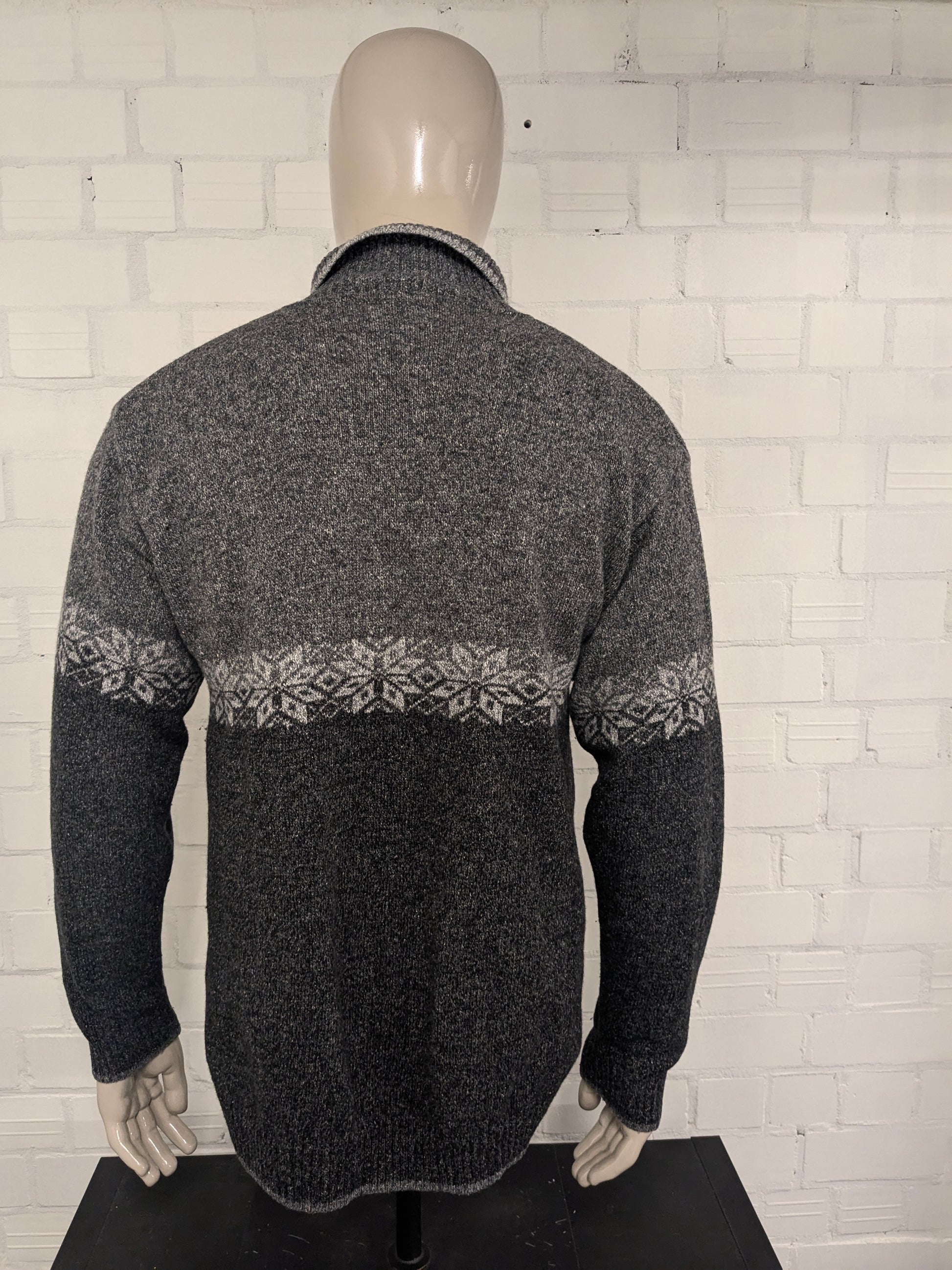 Canda woolen sweater with zipper. Gray colored. Size L. 60% Wool.