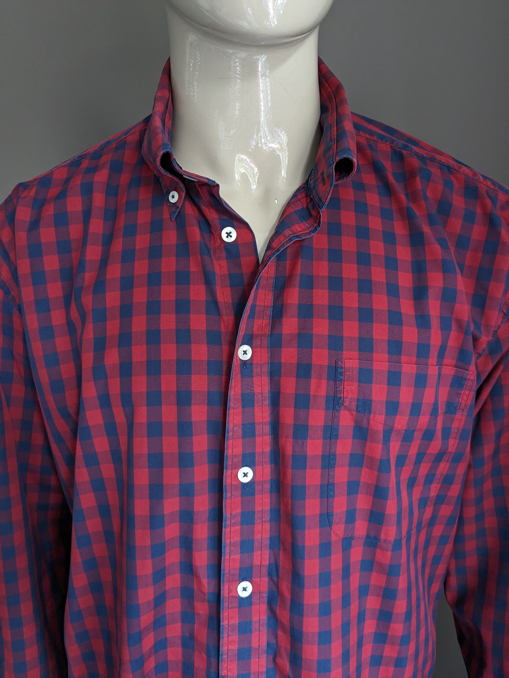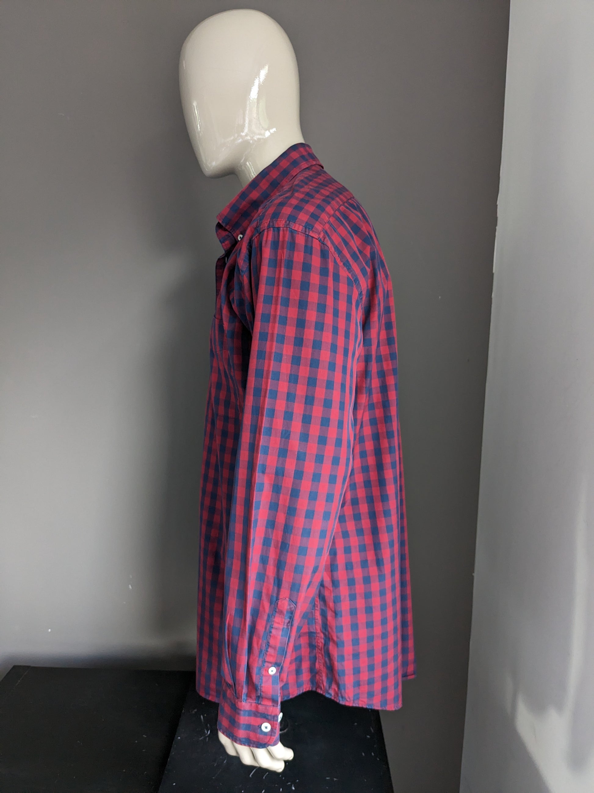 Floris Duetz shirt. Blue red blocked. Size 2XL / XXL.