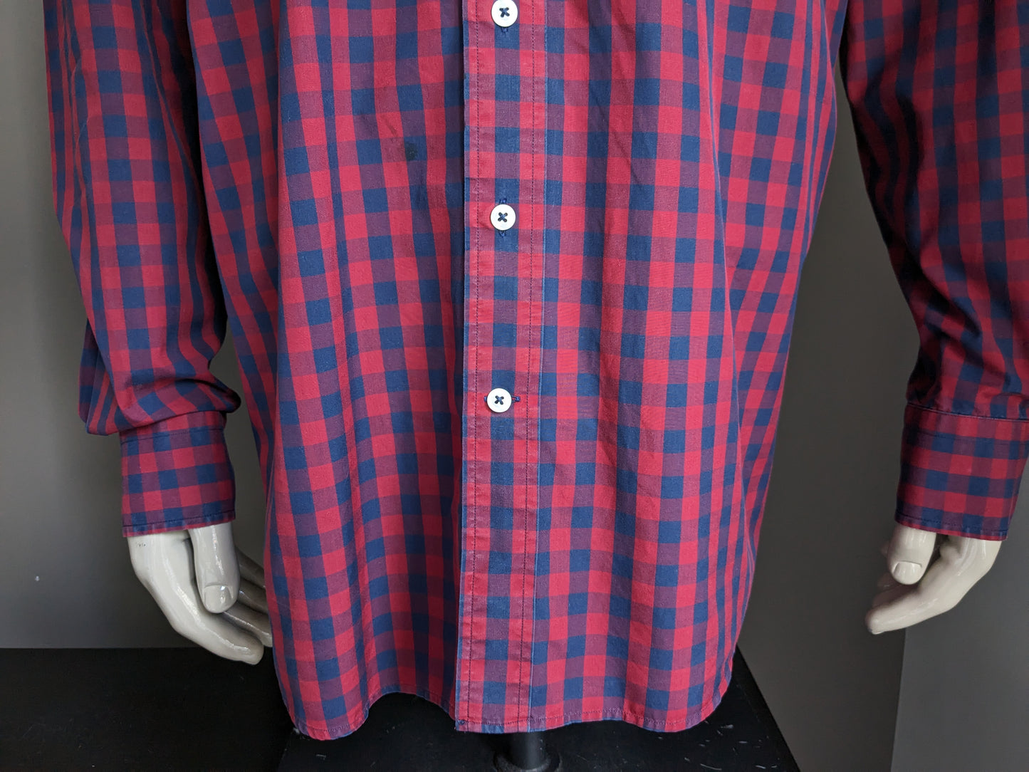 Wear this blue-red checkered shirt with neat pants and shoes for a business look, or combine it with jeans for a more relaxed outfit. Add your favorite accessories to emphasize your personal style.